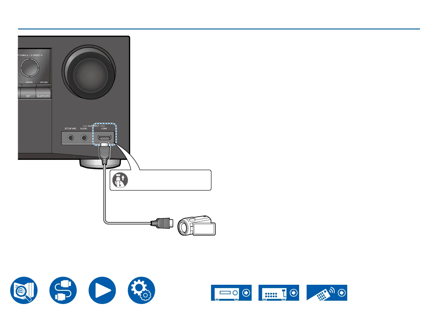 Connect a video camera, etc. to the AUX INPUT AUDIO/HDMI jack on the front