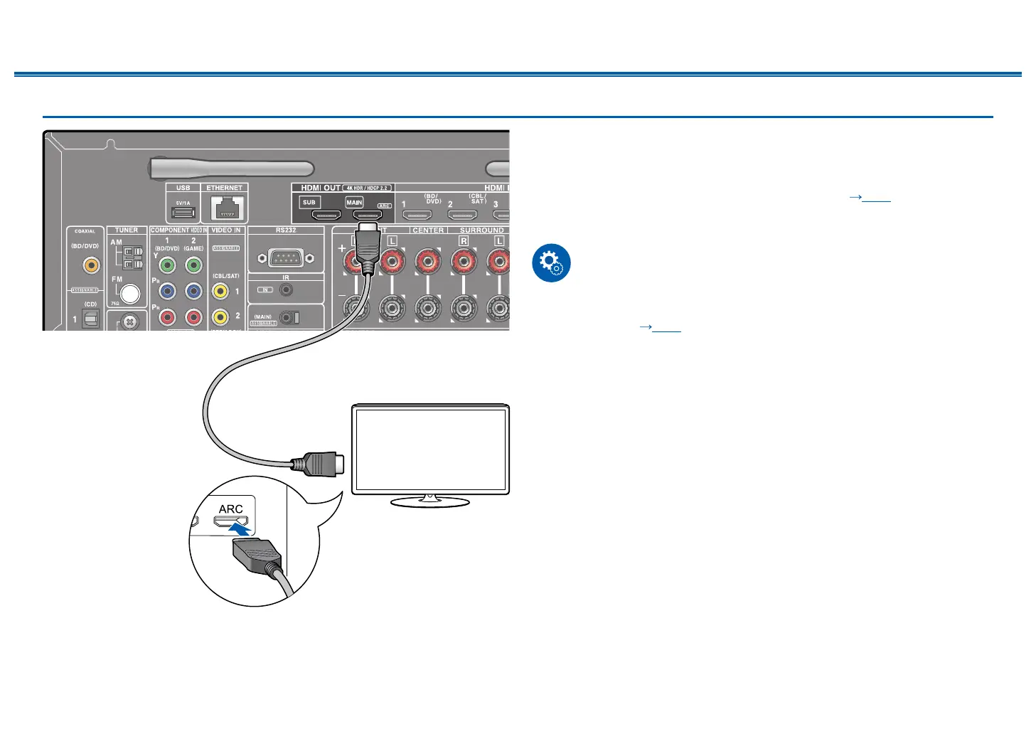 HDMI cable, and plays the audio of the TV on this unit. Connection to an ARC-