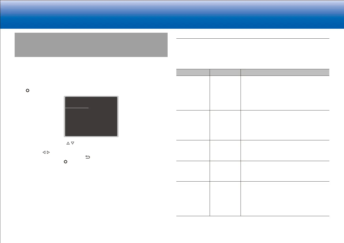 Select the item with the cursor / buttons of the remote controller and press ENTER to