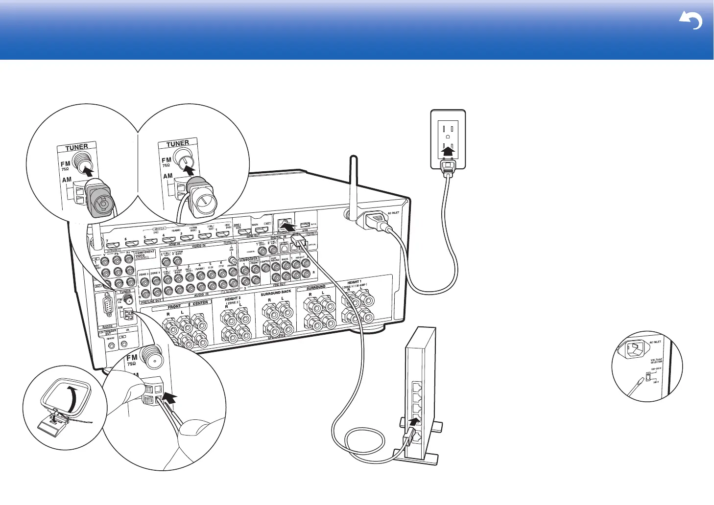 1 AM loop antenna, 2 Indoor FM antenna, 3 Ethernet cable, 4 Power cord