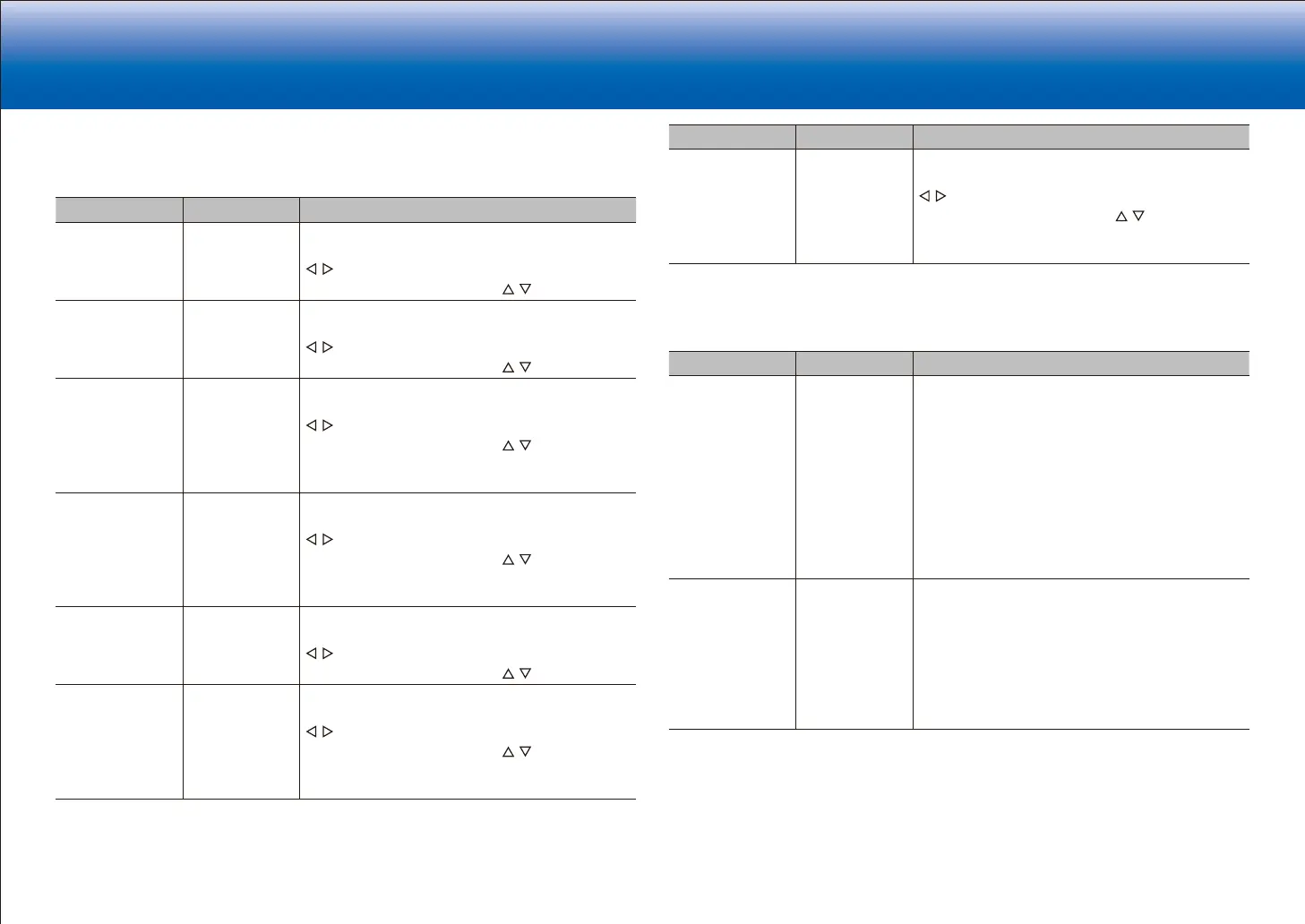 Setting item Default Value Setting Details