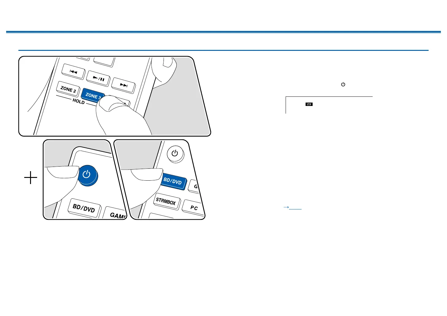 2. While pressing and holding the ZONE 3 button on the remote controller, press