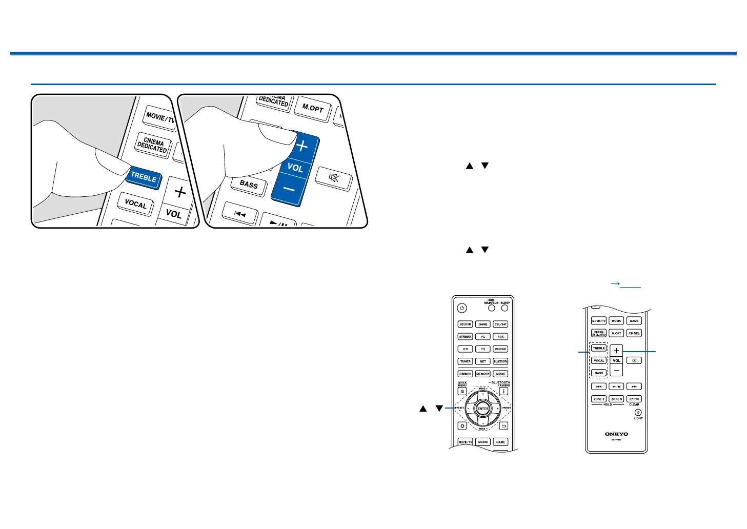 TREBLE: Enhances or moderates the high-tone range of the speakers.