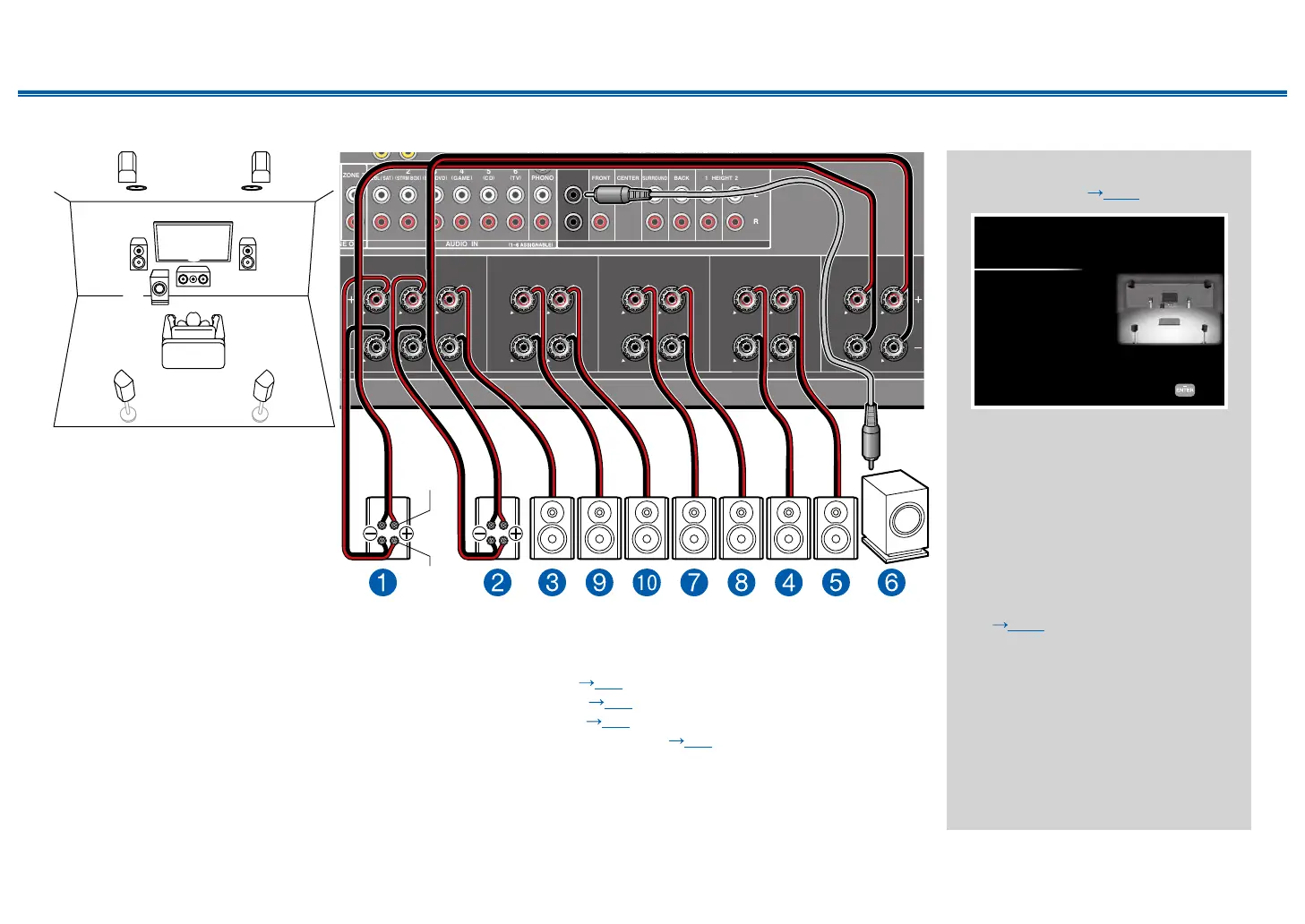 • If front speakers are to be Bi-Amping connected, height 1 speakers need to be connected to the SURROUND BACK