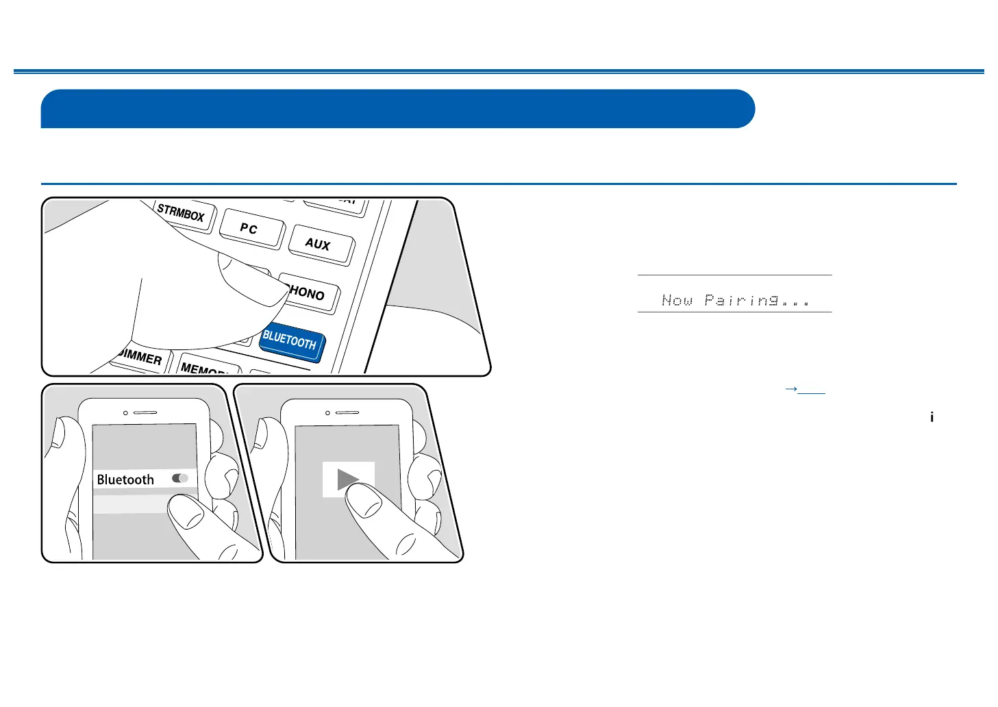 1. When you press the BLUETOOTH button, "Now Pairing..." appears on the
