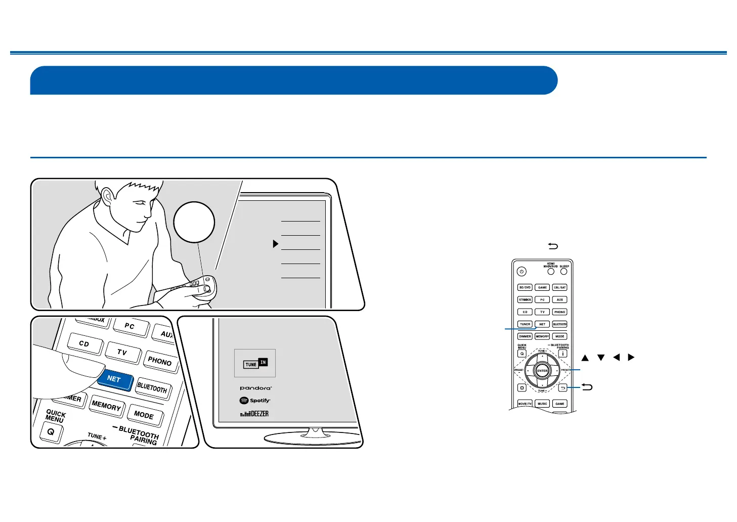 • Depending on the Internet radio service, a user registration may be required on your PC beforehand. For details of each service, visit the website of each service.