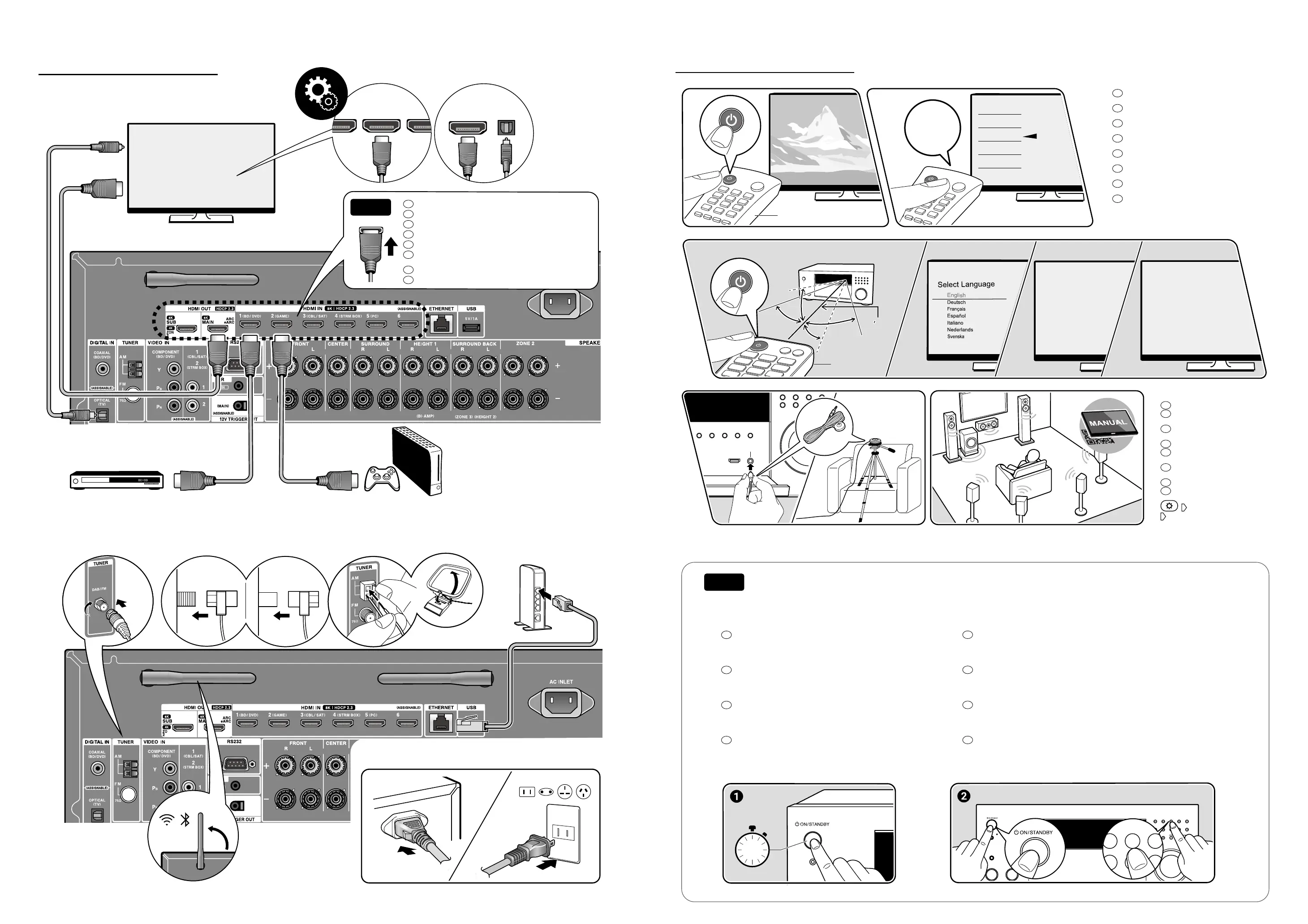 • Koppla ur strömsladden och HDMI-kablarna och sätt sedan tillbaka dem igen