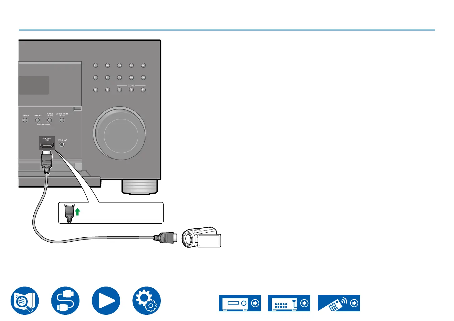 Connect a video camera, etc. to the AUX INPUT HDMI jack on the front panel