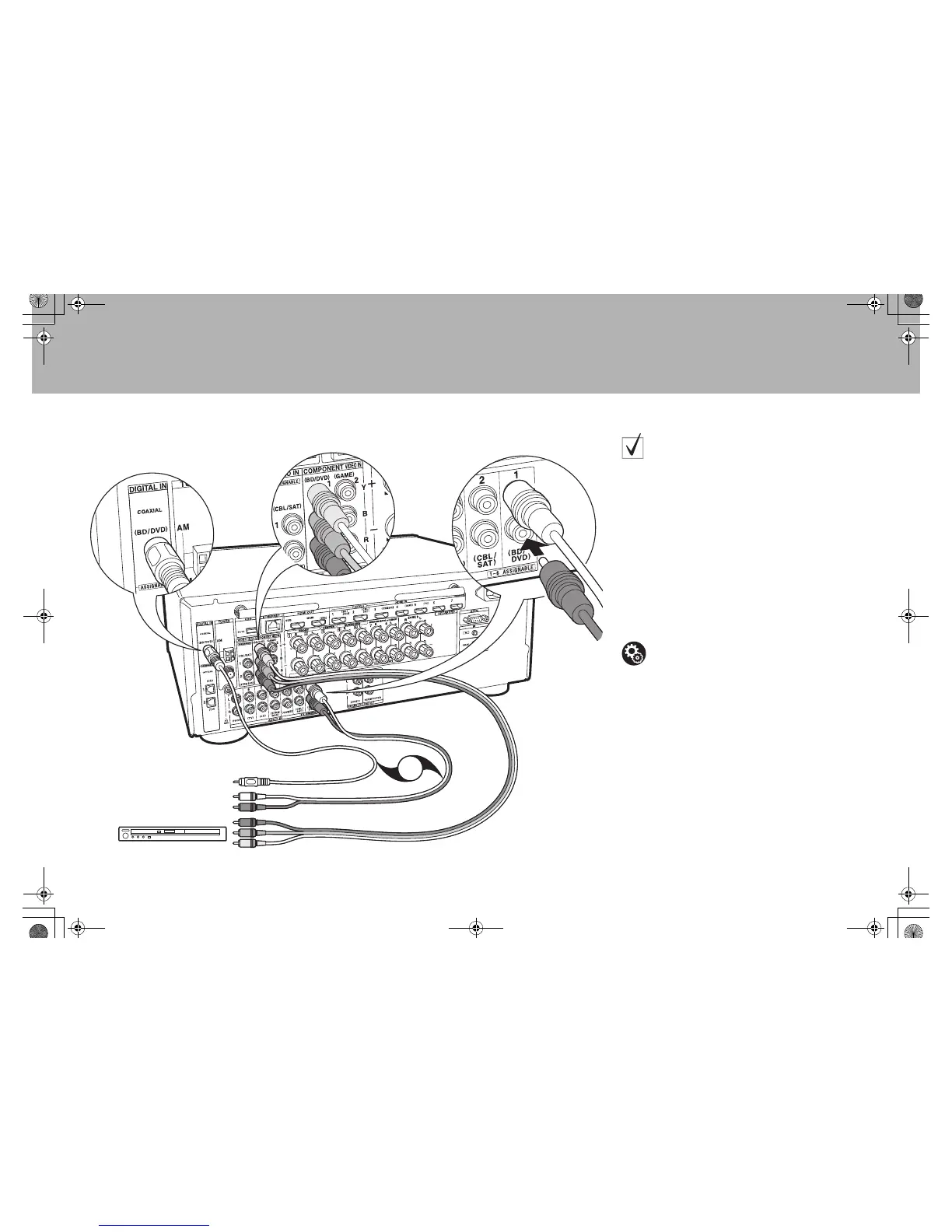 1 Component video cable, 2 Digital coaxial cable, 3 Analog audio cable