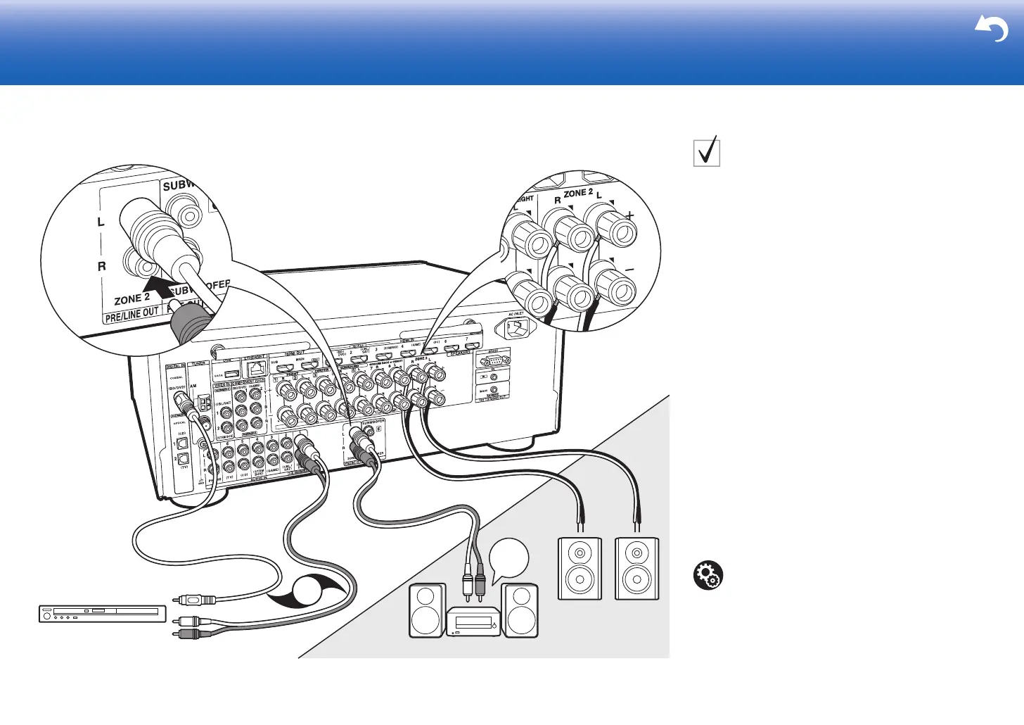 the ZONE 2 PRE/LINE OUT jacks of the unit and the
