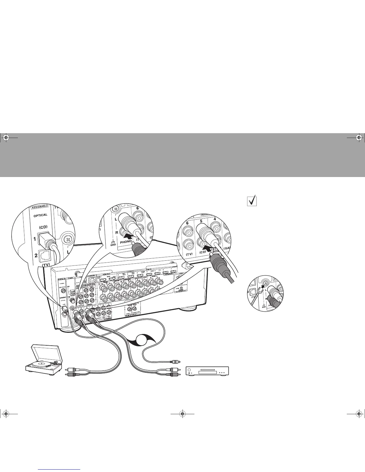 0 If the turntable has a built-in audio equalizer, connect it