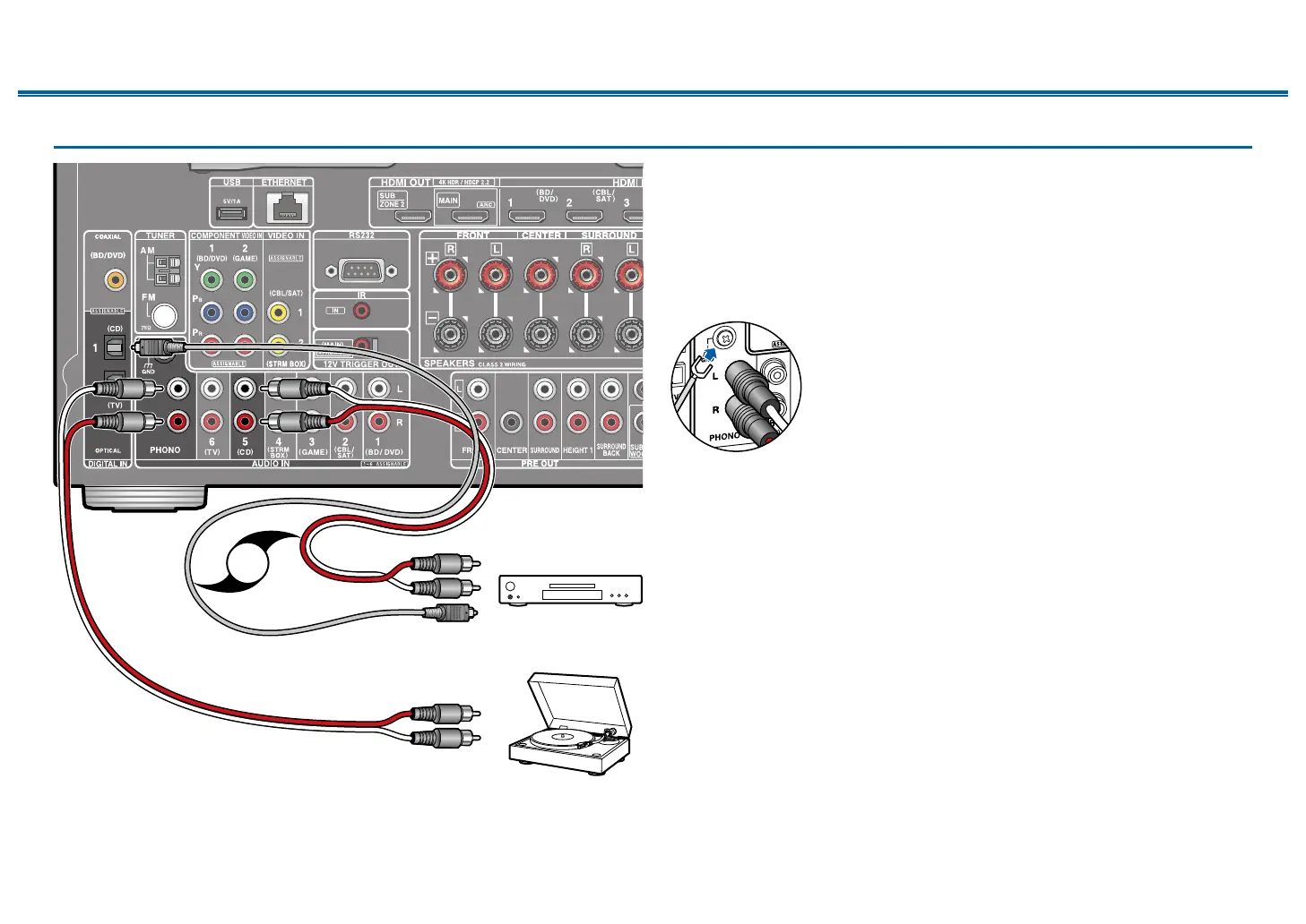 a digital optical cable or analog audio cable. You can also connect a turntable that