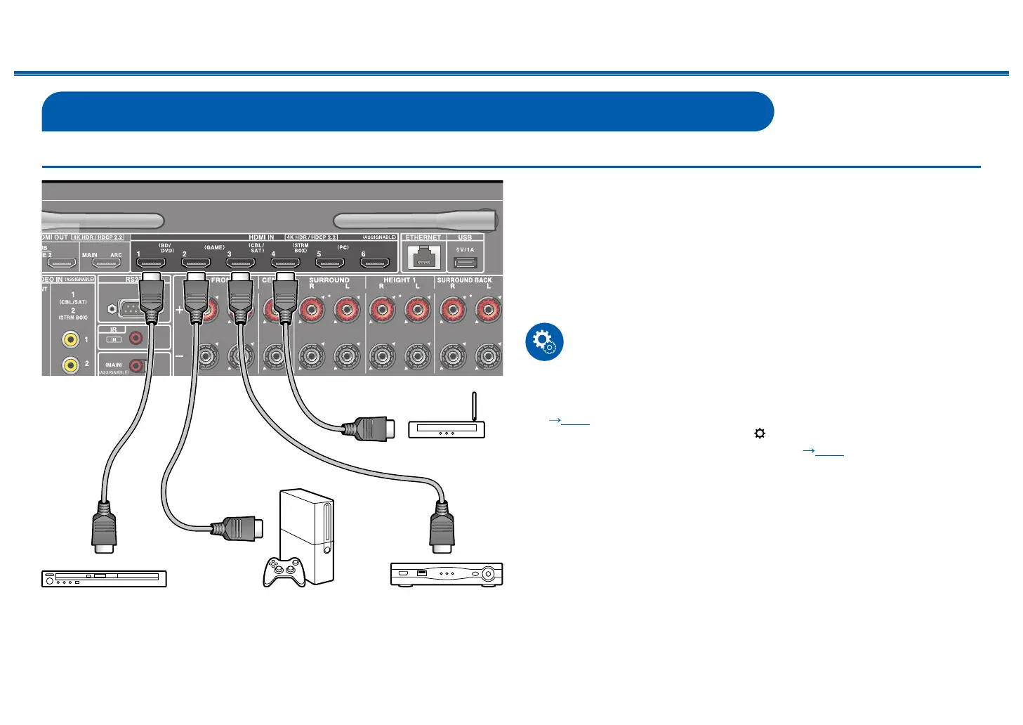 This is a connection example of an AV component equipped with an HDMI jack.