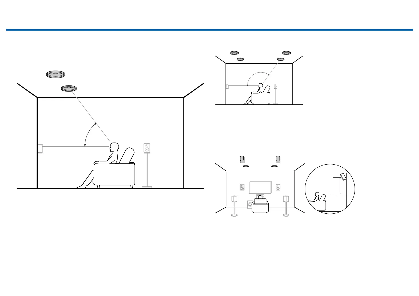 The top rear speakers are installed on the ceiling at rear of the listening position,