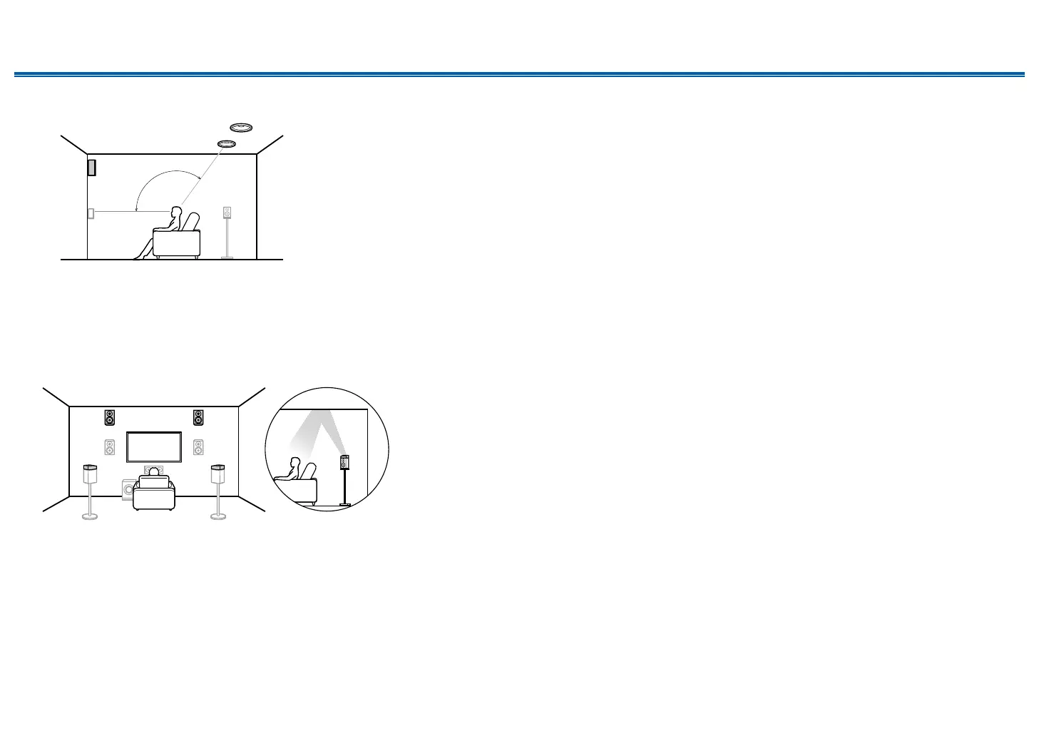 The top rear speakers are installed on the ceiling at rear of the listening position,