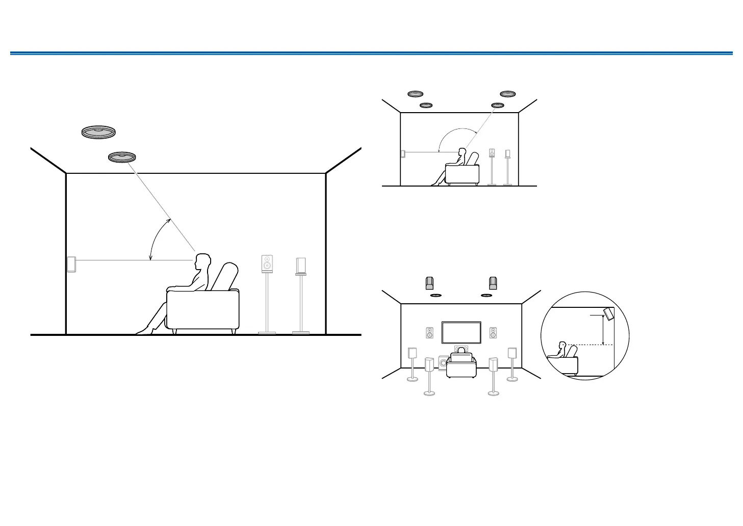 The top rear speakers are installed on the ceiling at rear of the listening position,