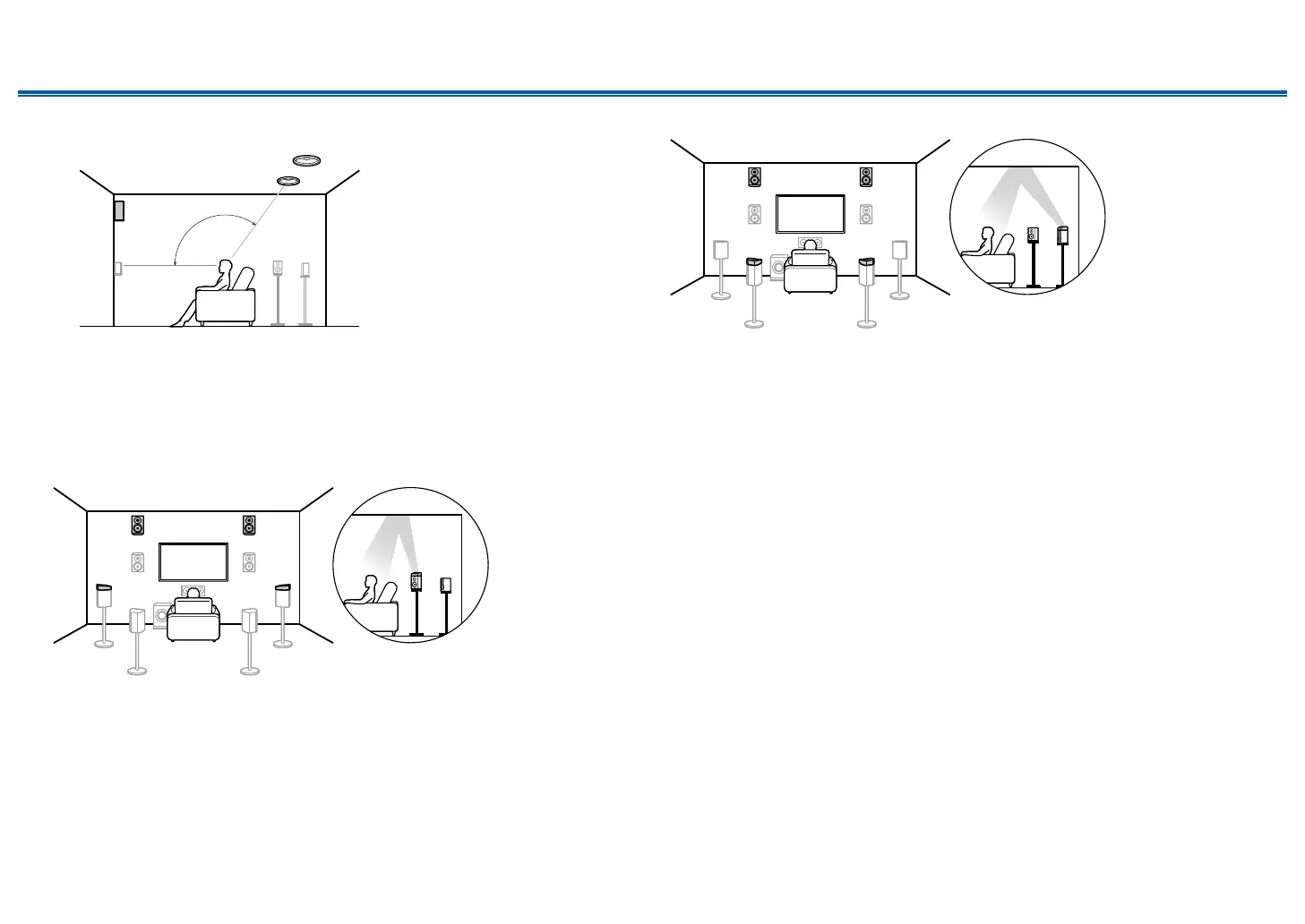 The top rear speakers are installed on the ceiling at rear of the listening position,