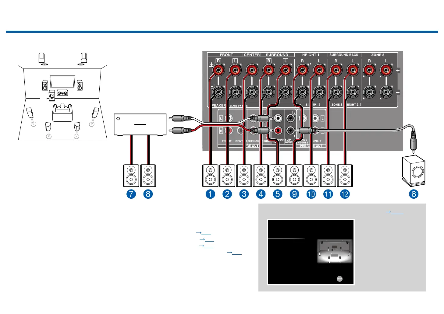 ❏ Combination example when Top Front Speakers are used at the front ( p33)