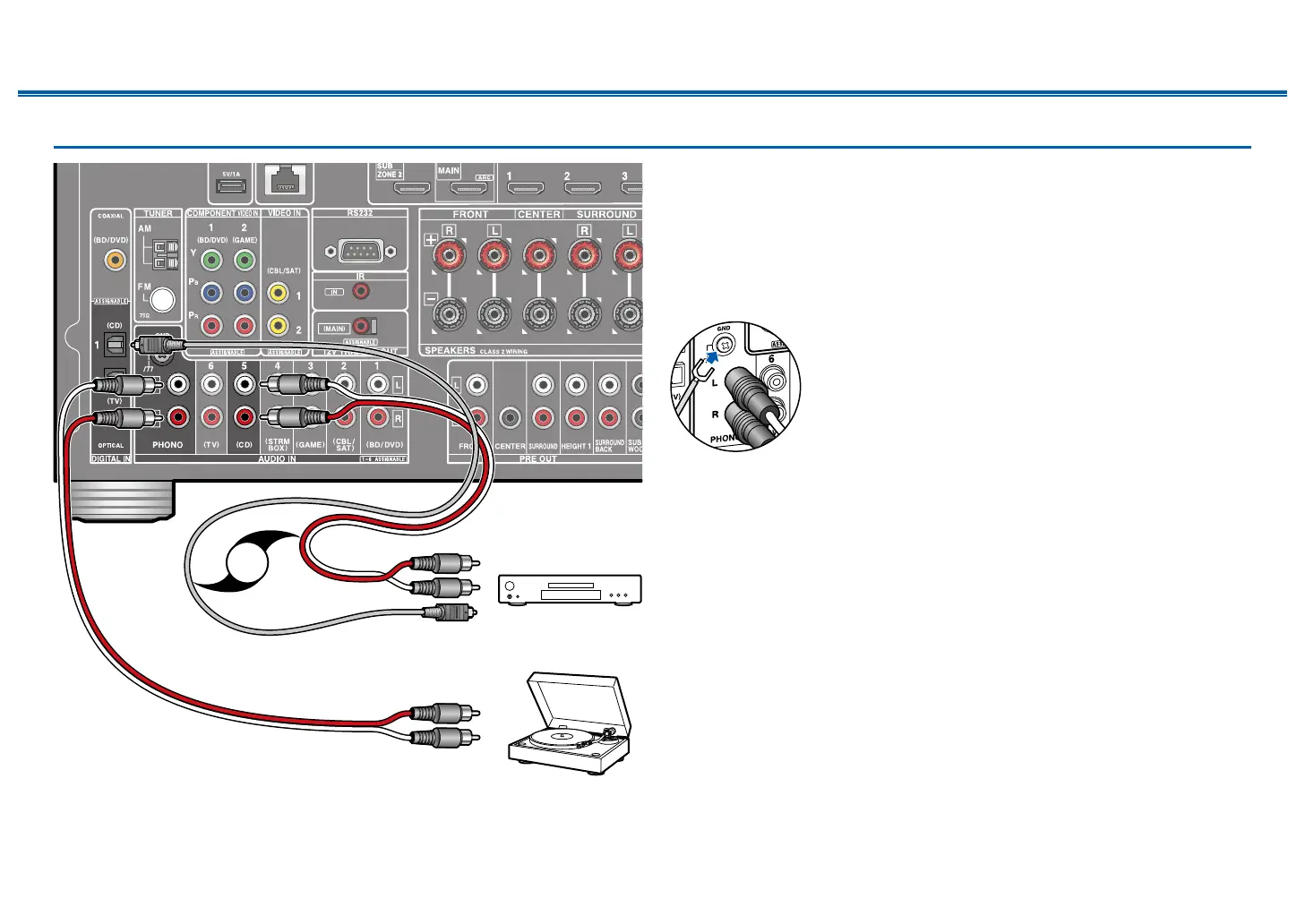 a digital optical cable or analog audio cable. You can also connect a turntable that