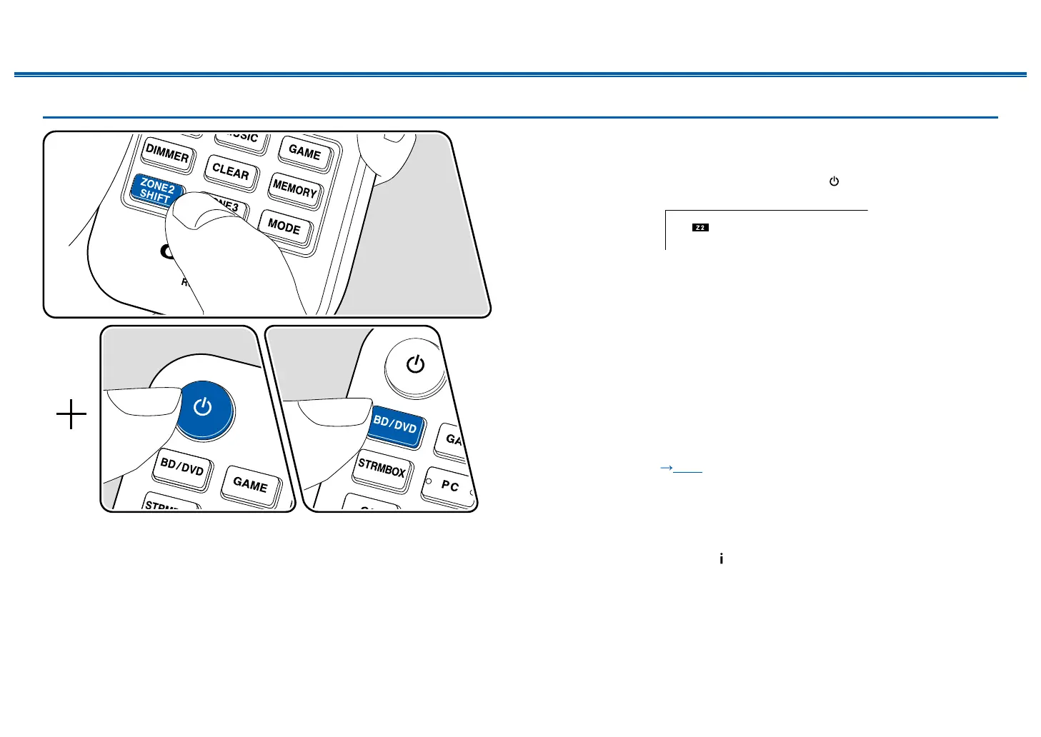 In remote controller operation, while pressing and holding the ZONE 2 SHIFT