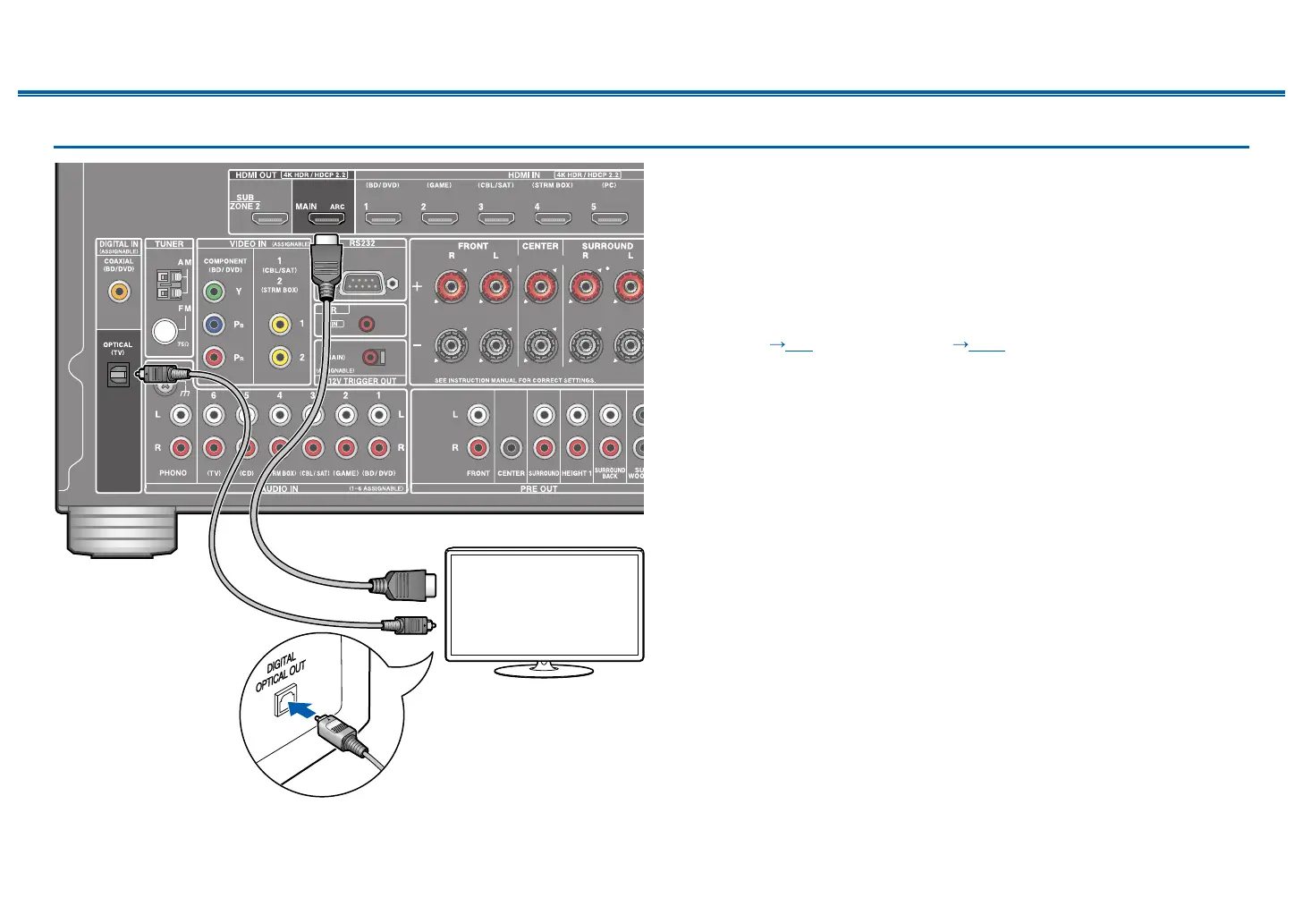If the TV does not support the ARC (Audio Return Channel) function (*), connect
