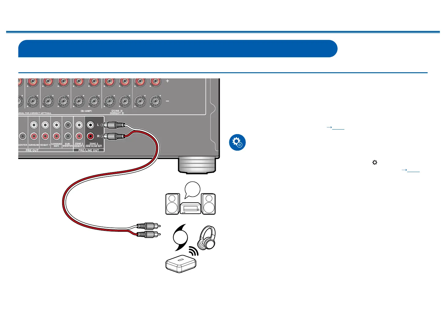 B LINE OUT jack. Use an analog audio cable to connect the ZONE B LINE OUT