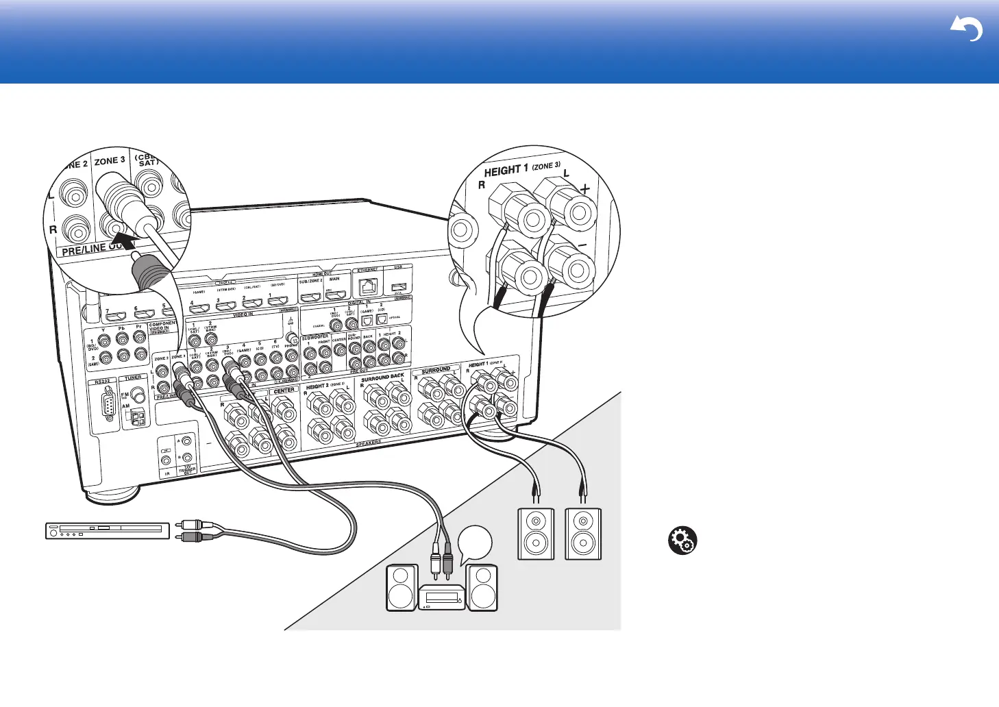 main room. Connect the ZONE 3 PRE/LINE OUT jacks of
