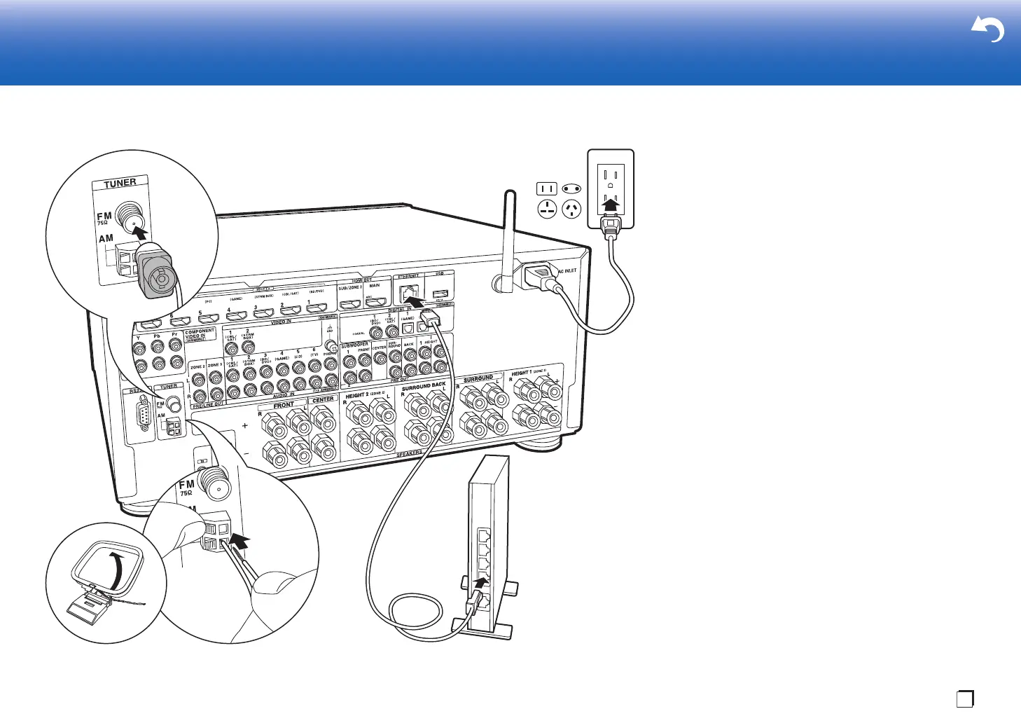 a Indoor FM Antenna, b AM Loop Antenna, c Ethernet Cable, d Power Cord