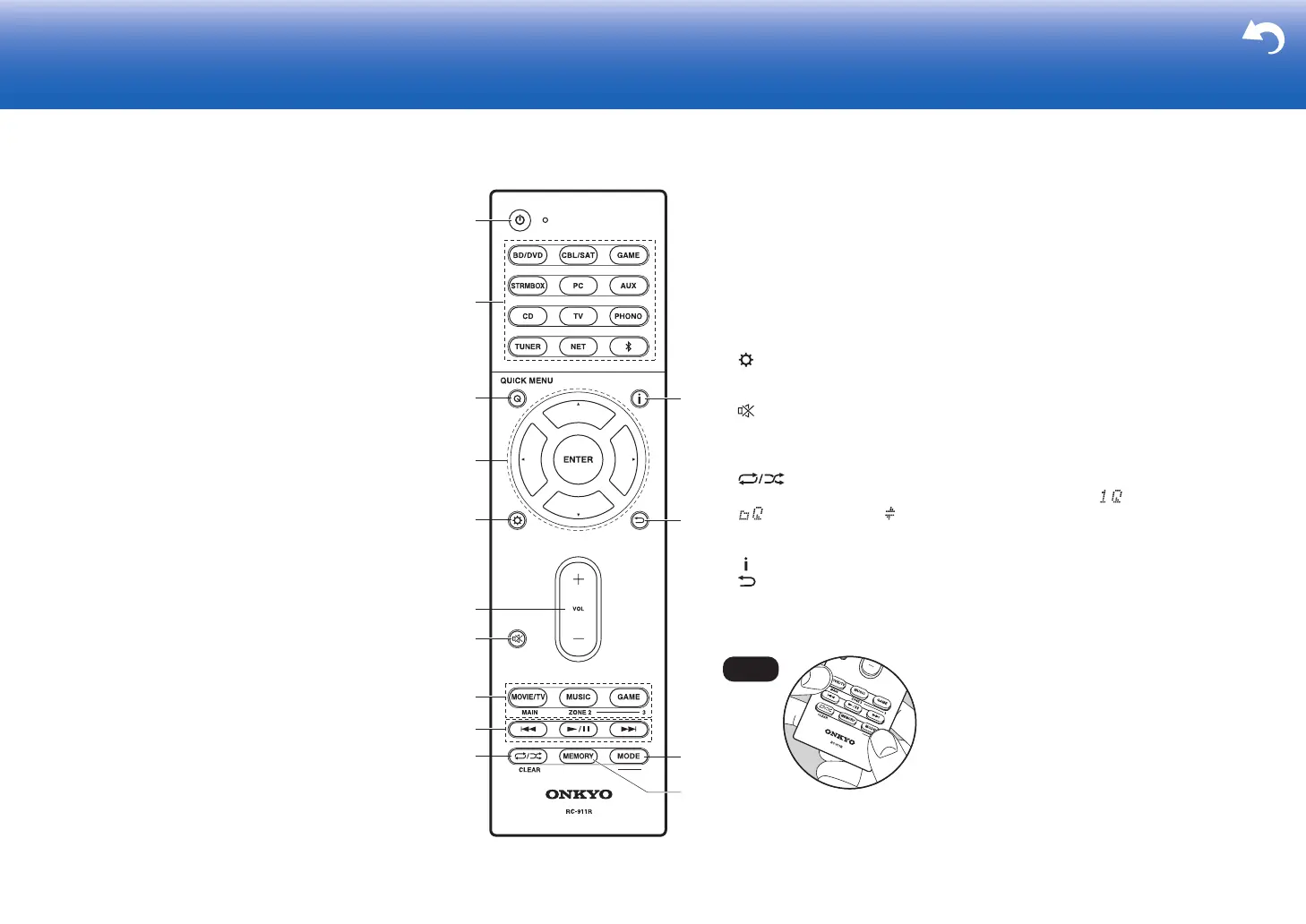 MAIN/ZONE 2/ZONE 3 buttons: Controls the multi-zone function (P31).
