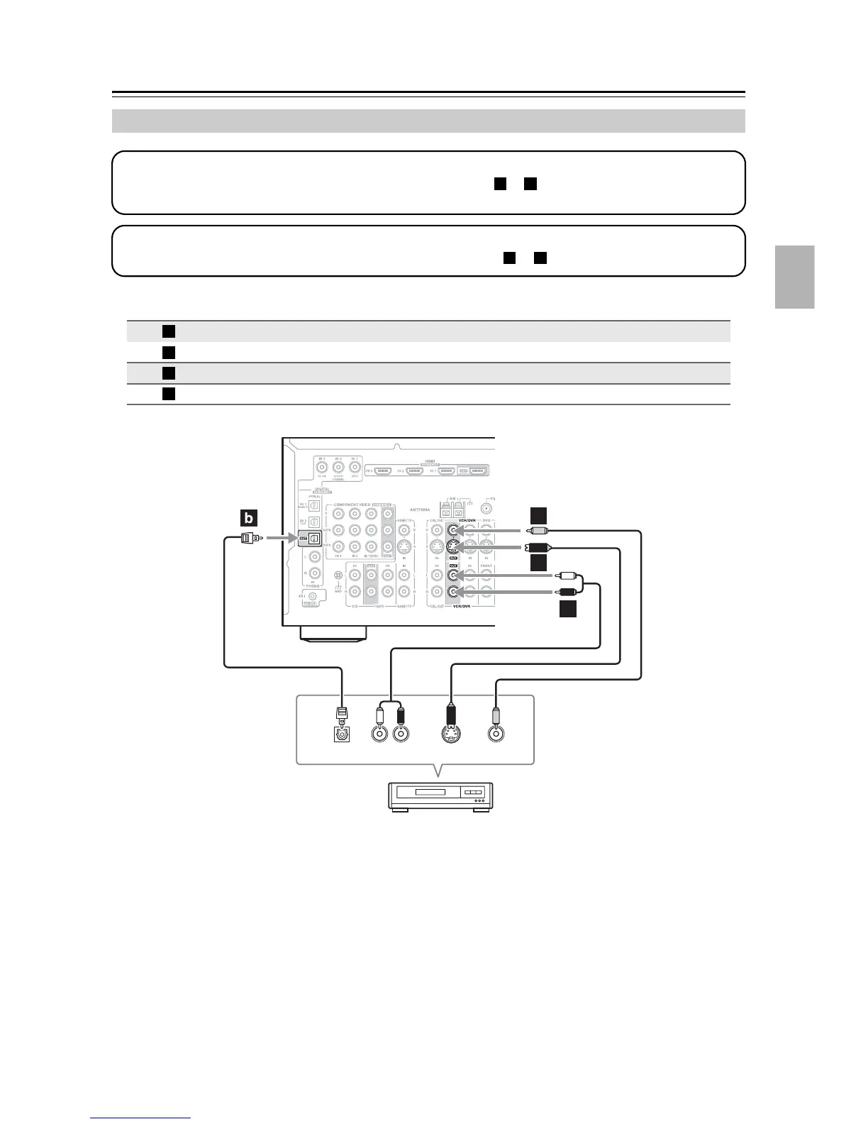 video source to be recorded must be connected to the AV receiver/AV amplifier via the same type of connection.
