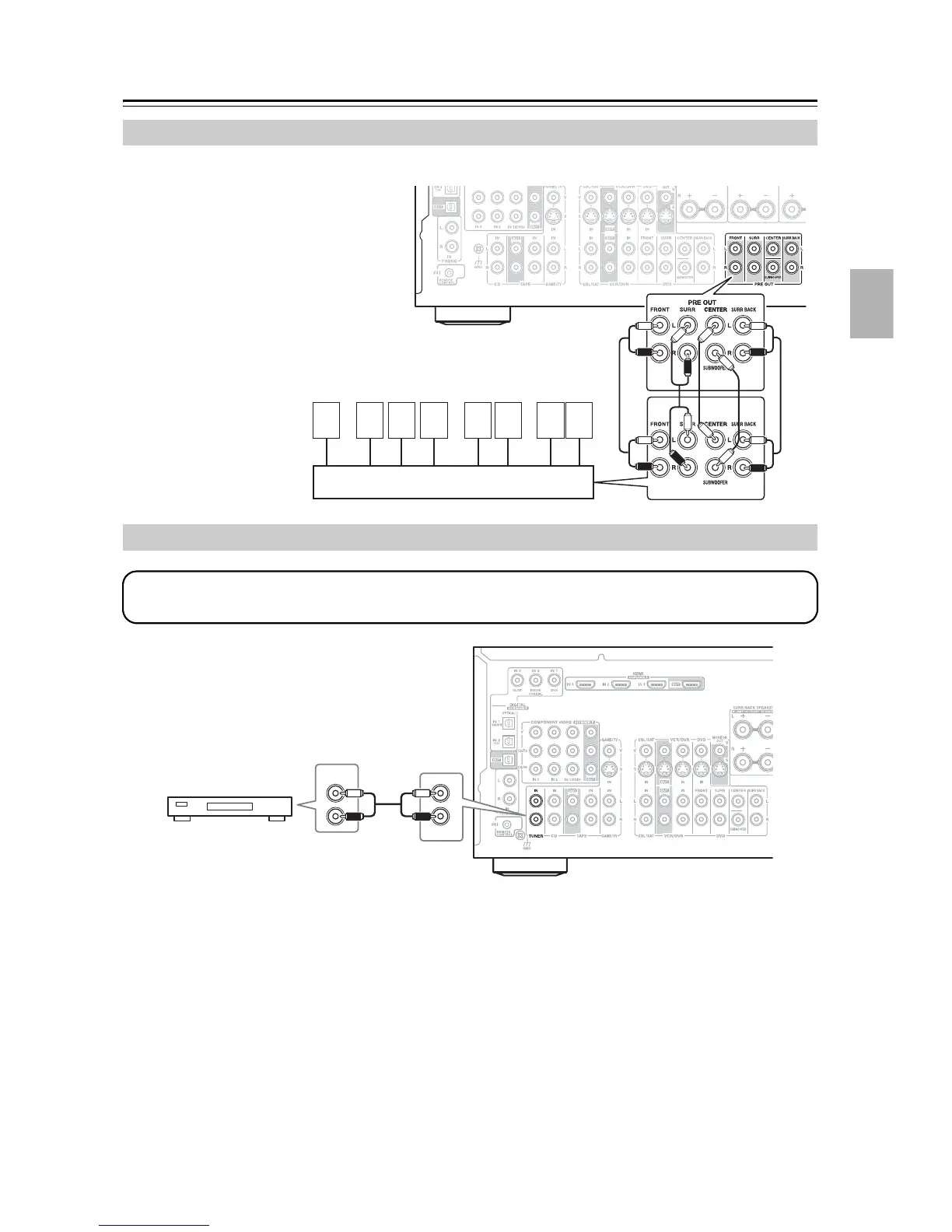 Connect your tuner's analog audio output jacks to the AV amplifier's TUNER L/R IN jacks with an audio cable.
