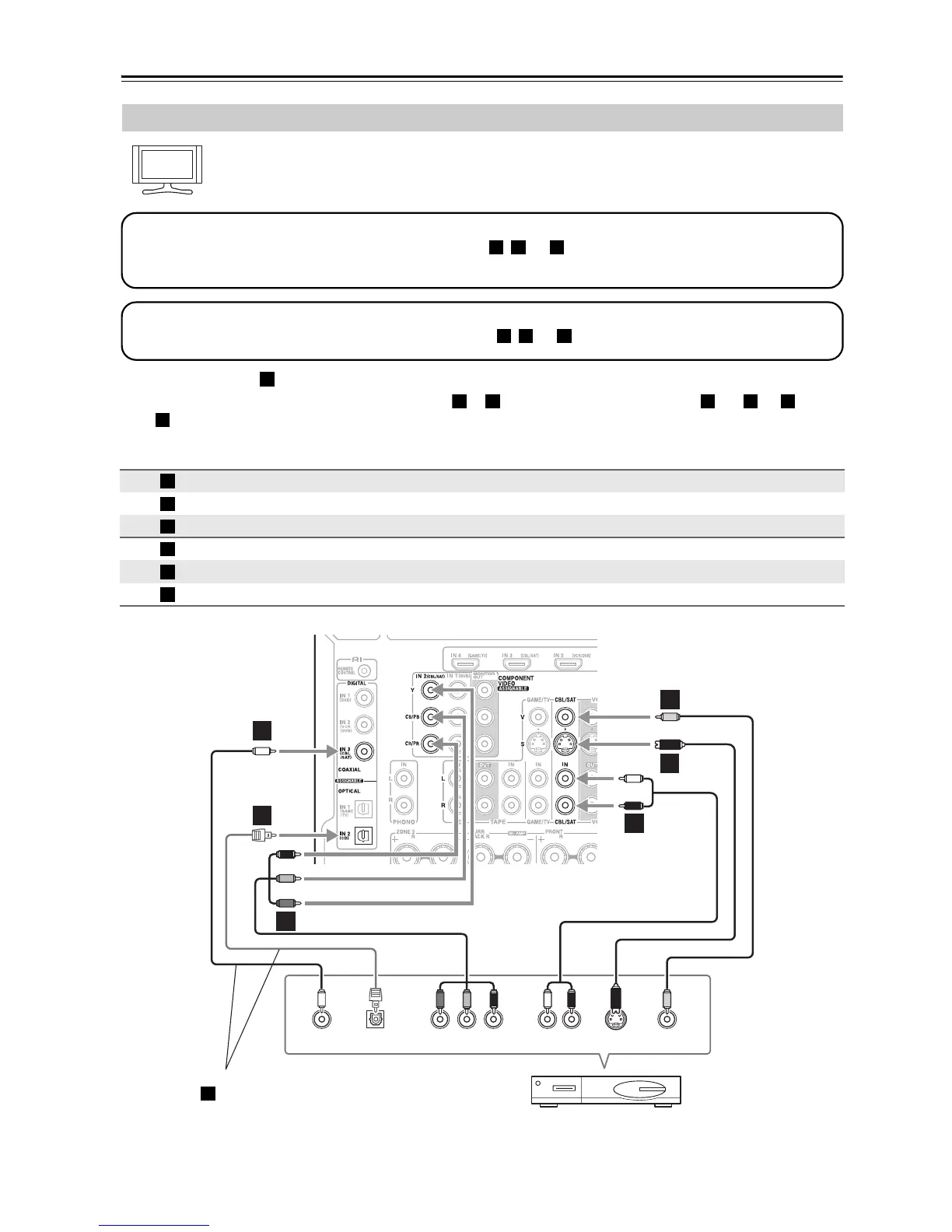 • With connection , you can listen to and record audio from the video source and listen in Zone 2.
