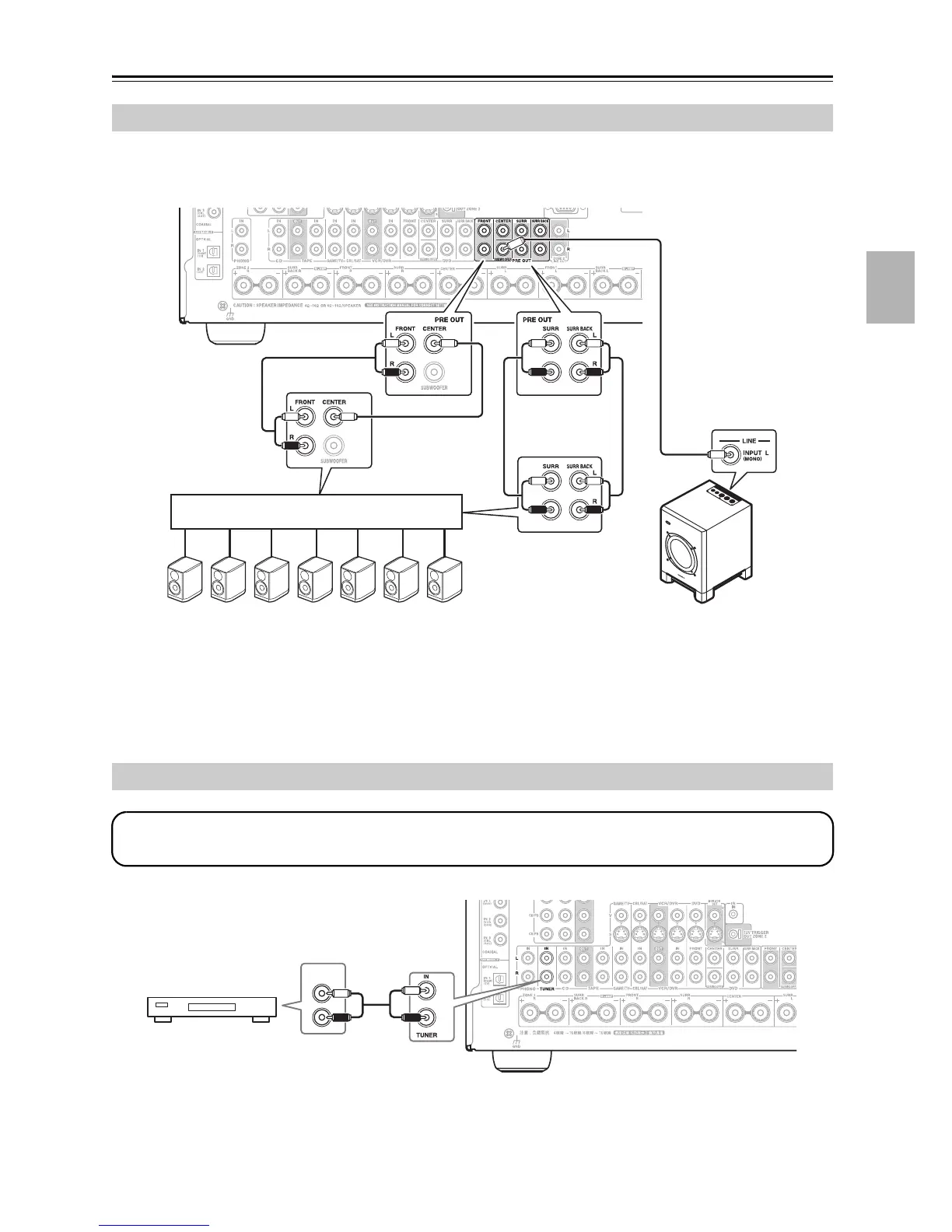 PRE OUT jacks, and connect all speakers and the subwoofer to the power amplifier. If you have a powered subwoofer,