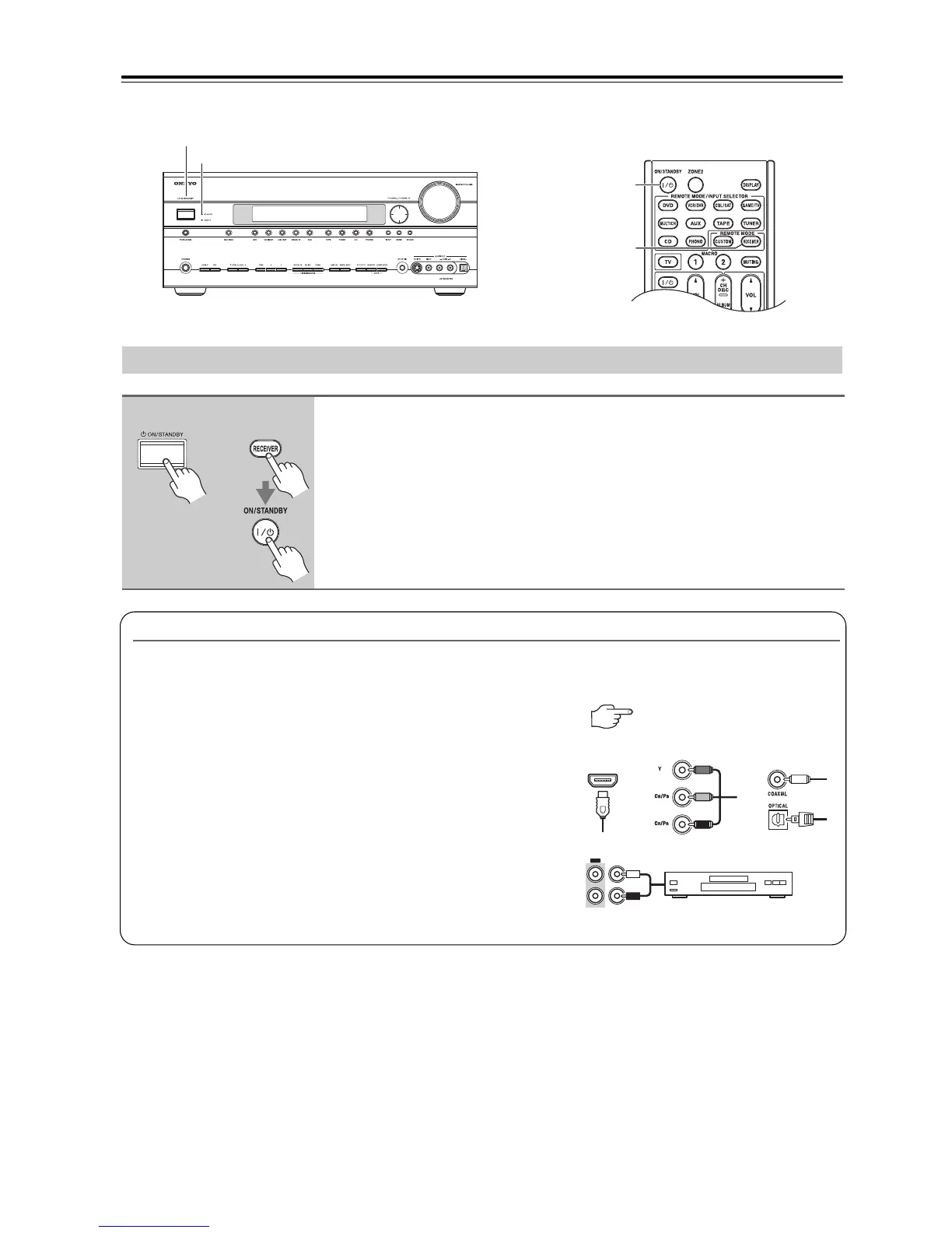 the remote controller’s [ON/STANDBY] button. The AV receiver/AV amplifier will