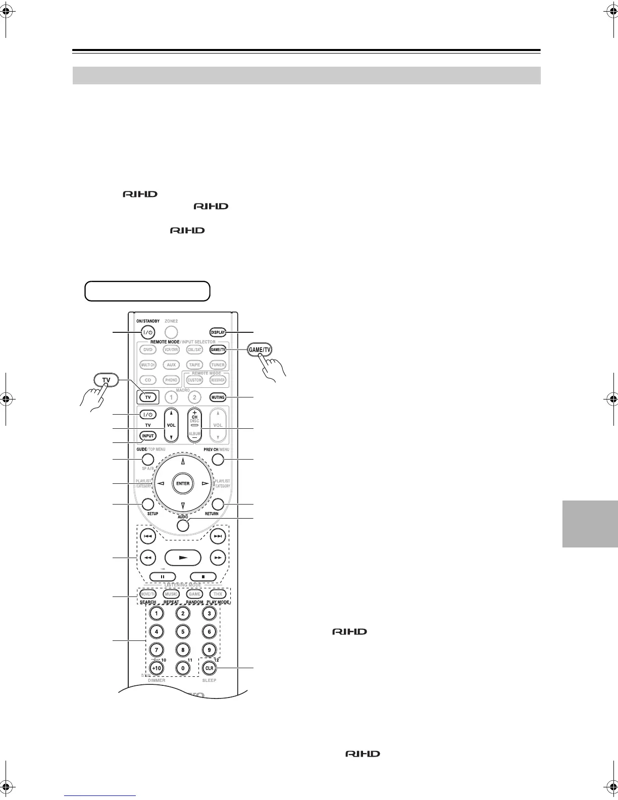 The [TV] and [GAME/TV] buttons are preprogrammed