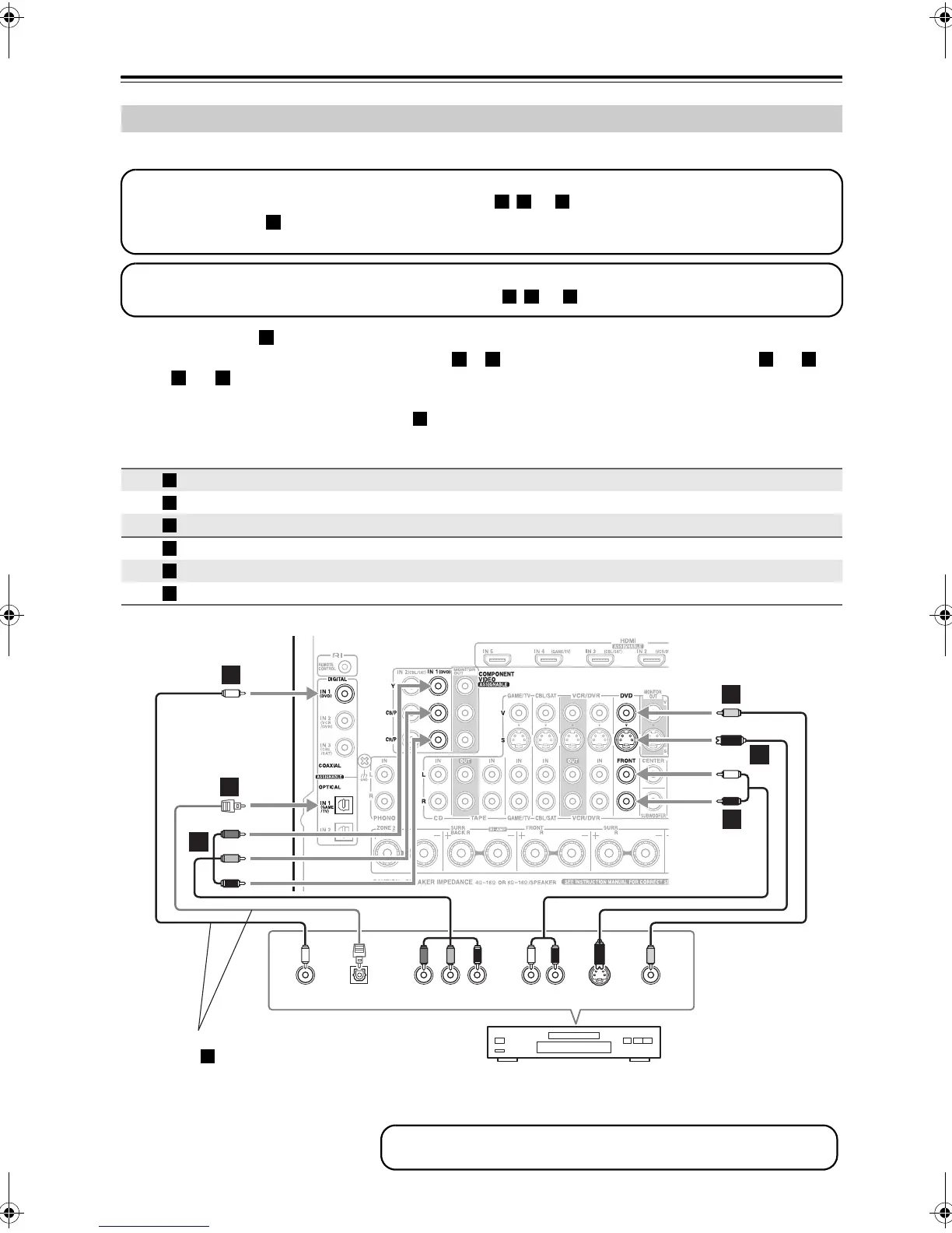 • With connection , you can listen to and record audio from a DVD and listen in Zone 2.