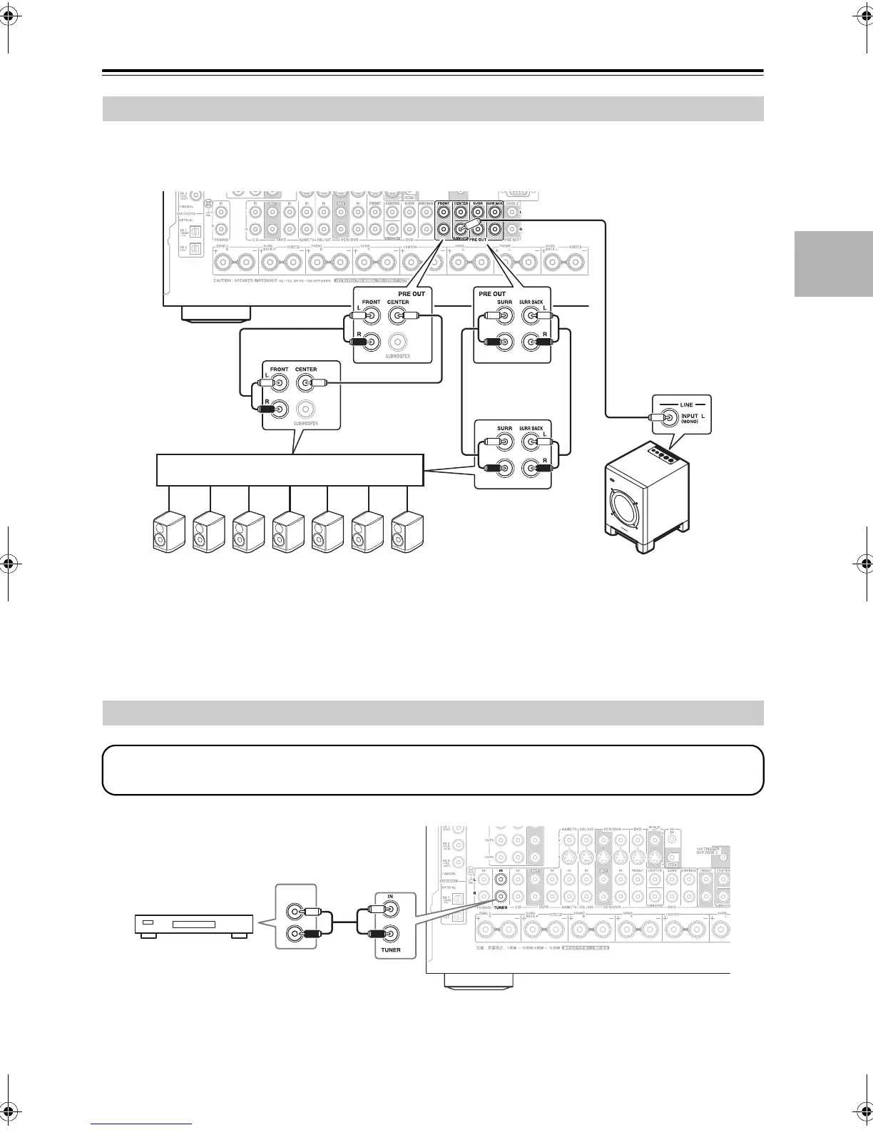 PRE OUT jacks, and connect all speakers and the subwoofer to the power amplifier. If you have a powered subwoofer,