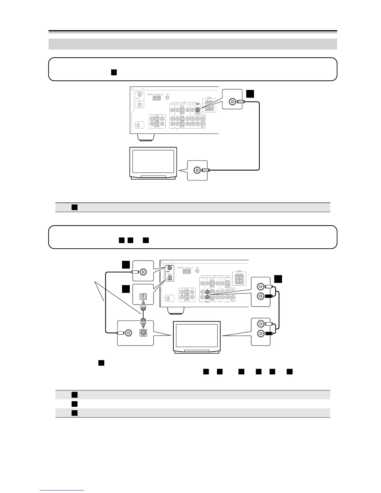 If your TV has no audio outputs, connect your VCR to the AV receiver and use its tuner.
