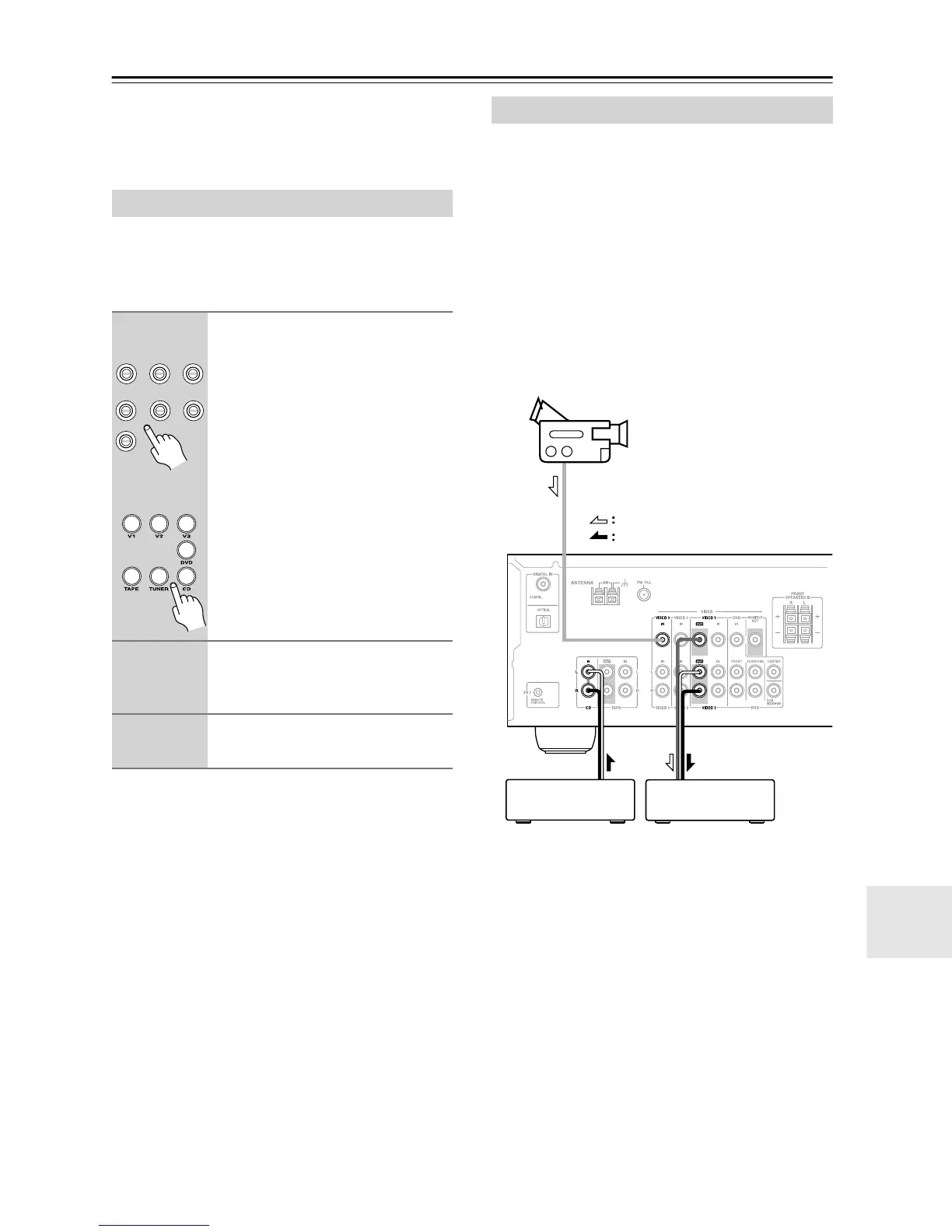 nected to the CD IN jacks, and video from the camcorder