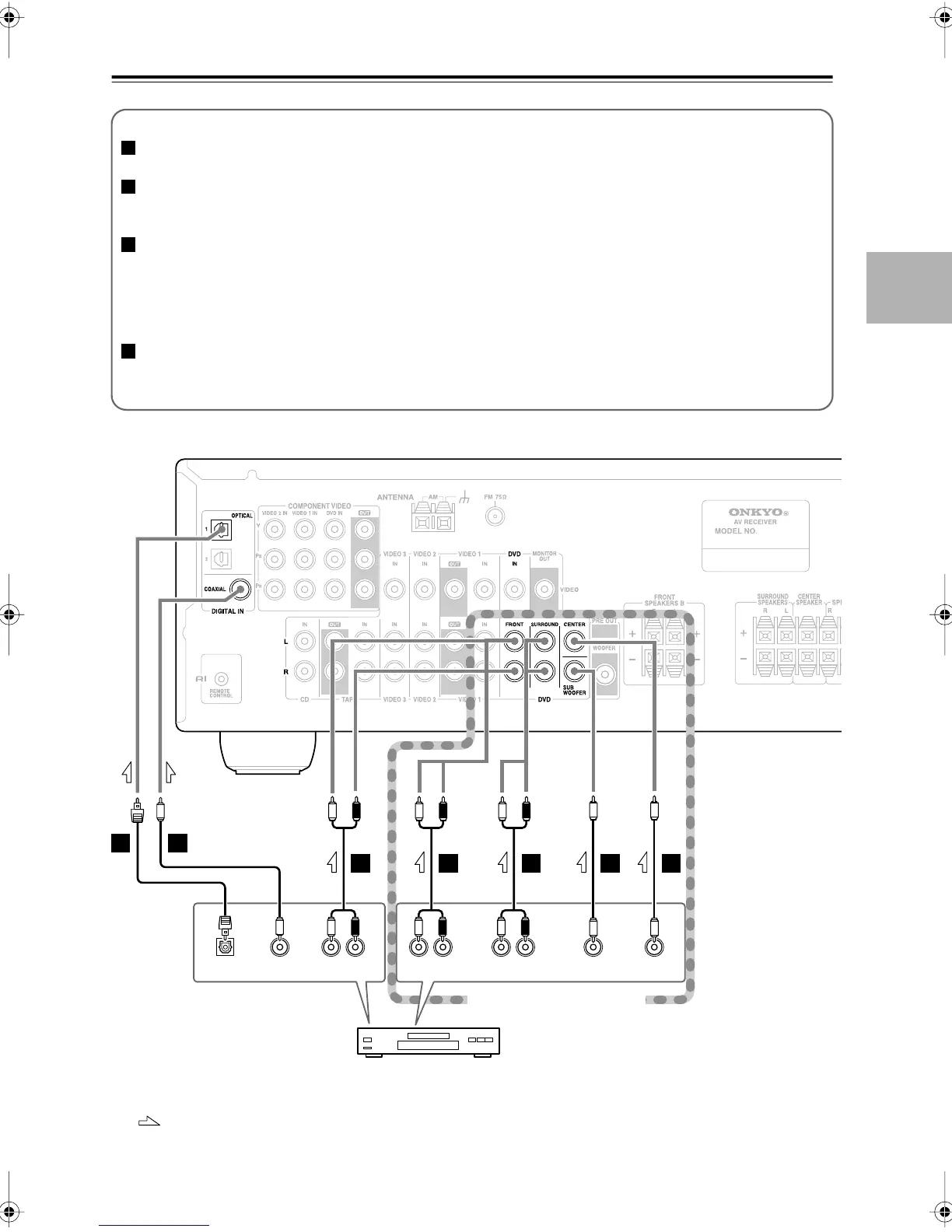 If your DVD player has an optical digital audio output jack instead of coaxial one, connect it to the AV receiver’s
