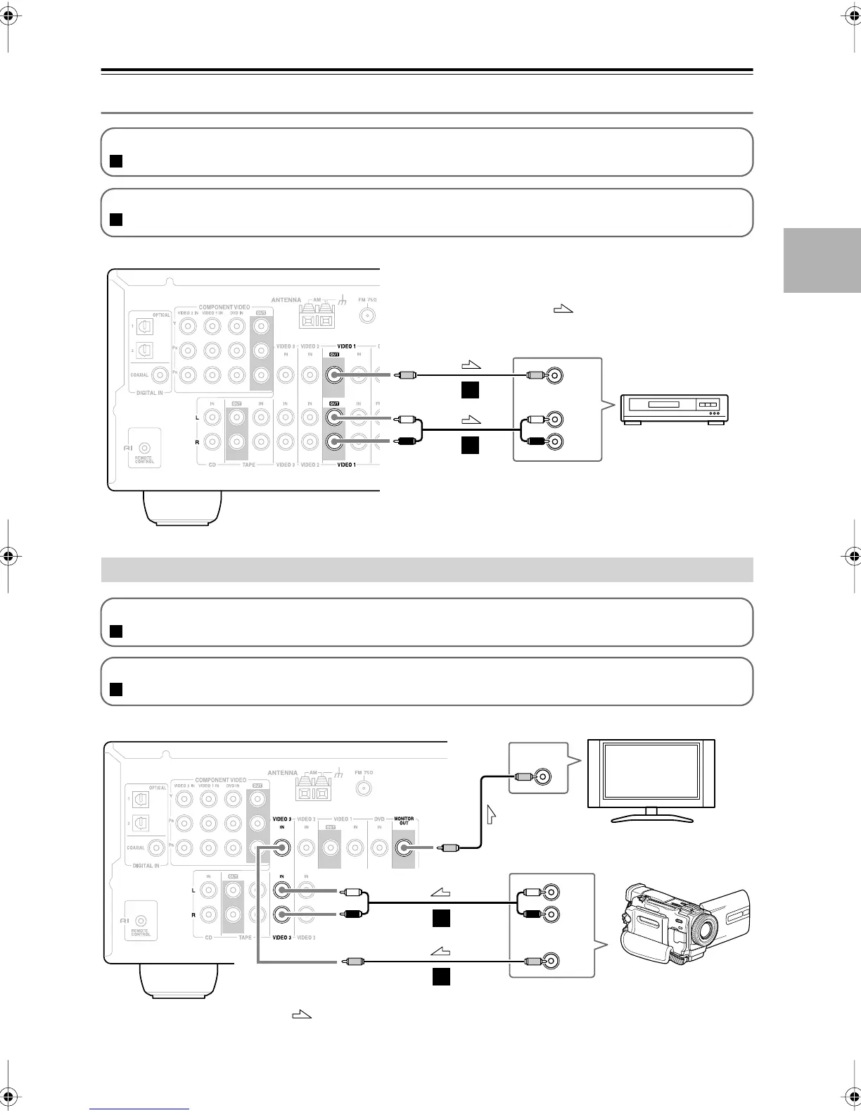 Connect your camcorder’s audio output jack to the AV receiver’s VIDEO 3 IN L/R jacks.