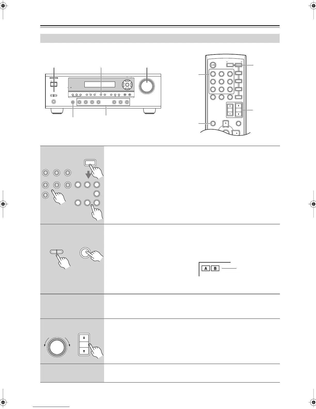 Use the SPEAKERS [A] and [B] buttons on the AV receiver or the [SP A/B]