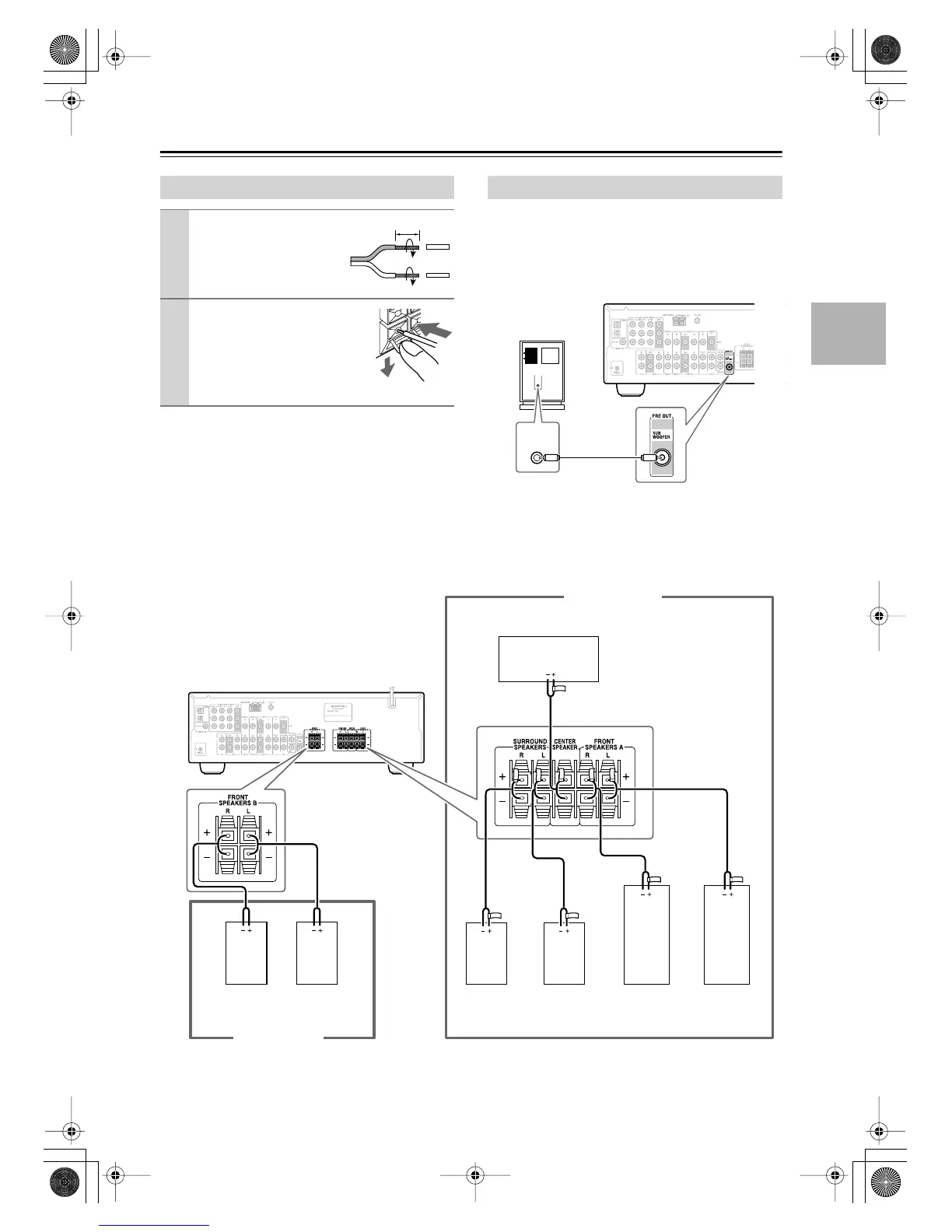 The following illustration shows which speaker should be connected to each pair of terminals.