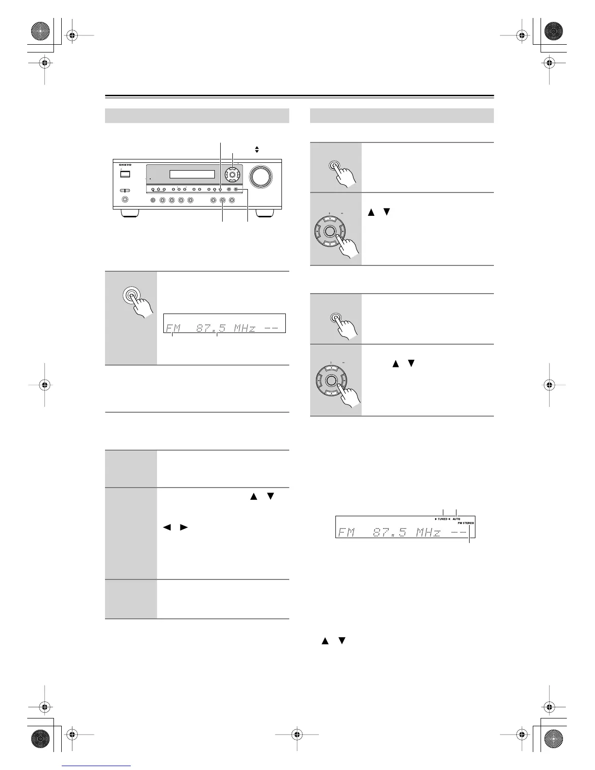 0.05 MHz steps for FM and 9 kHz or 10 kHz steps for