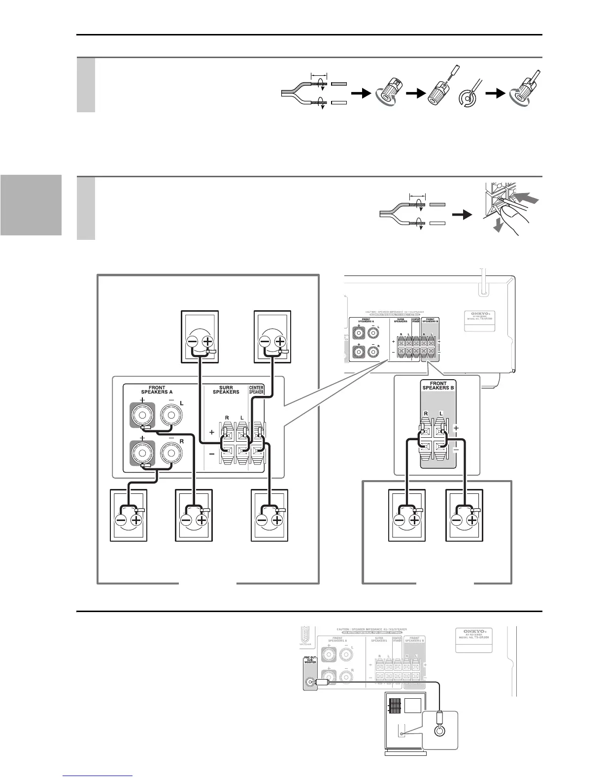 • If you are using banana plugs, tighten the speaker terminal before inserting the banana plug.