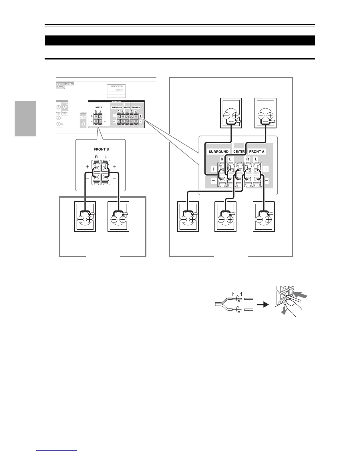 The following illustration shows which speaker should be connected to each pair of terminals.