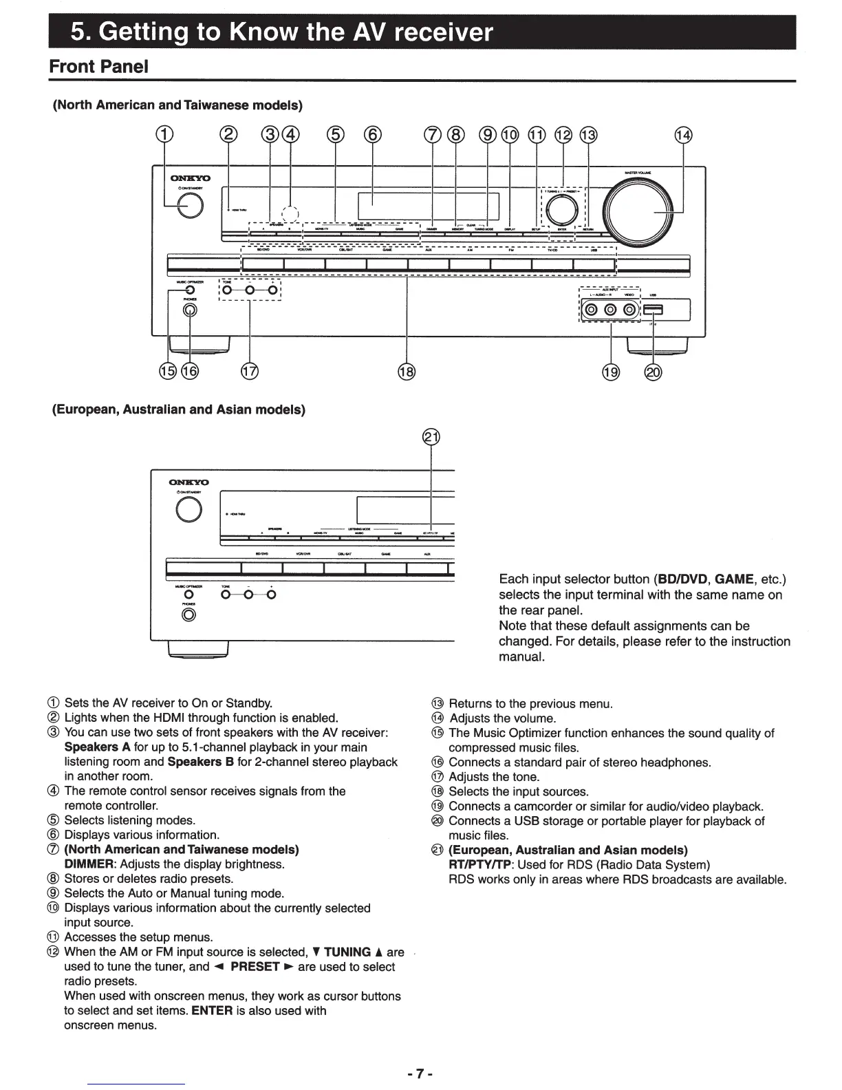 (North American and Taiwanese models)