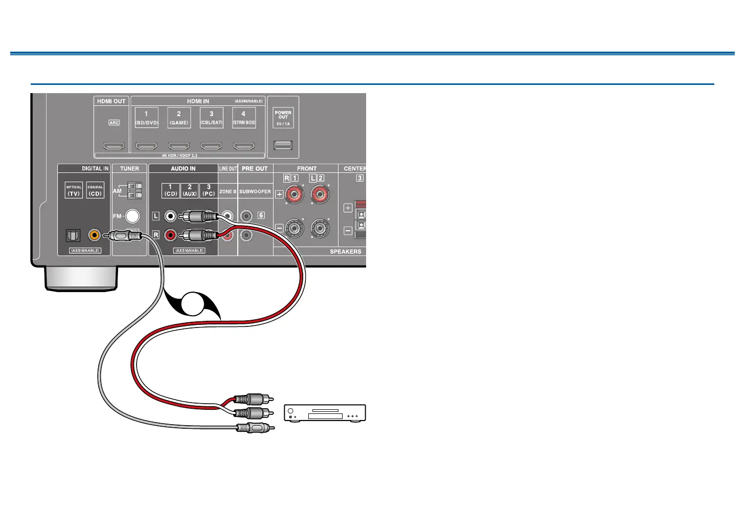 This is a connection example of an audio component. Connect a CD player using