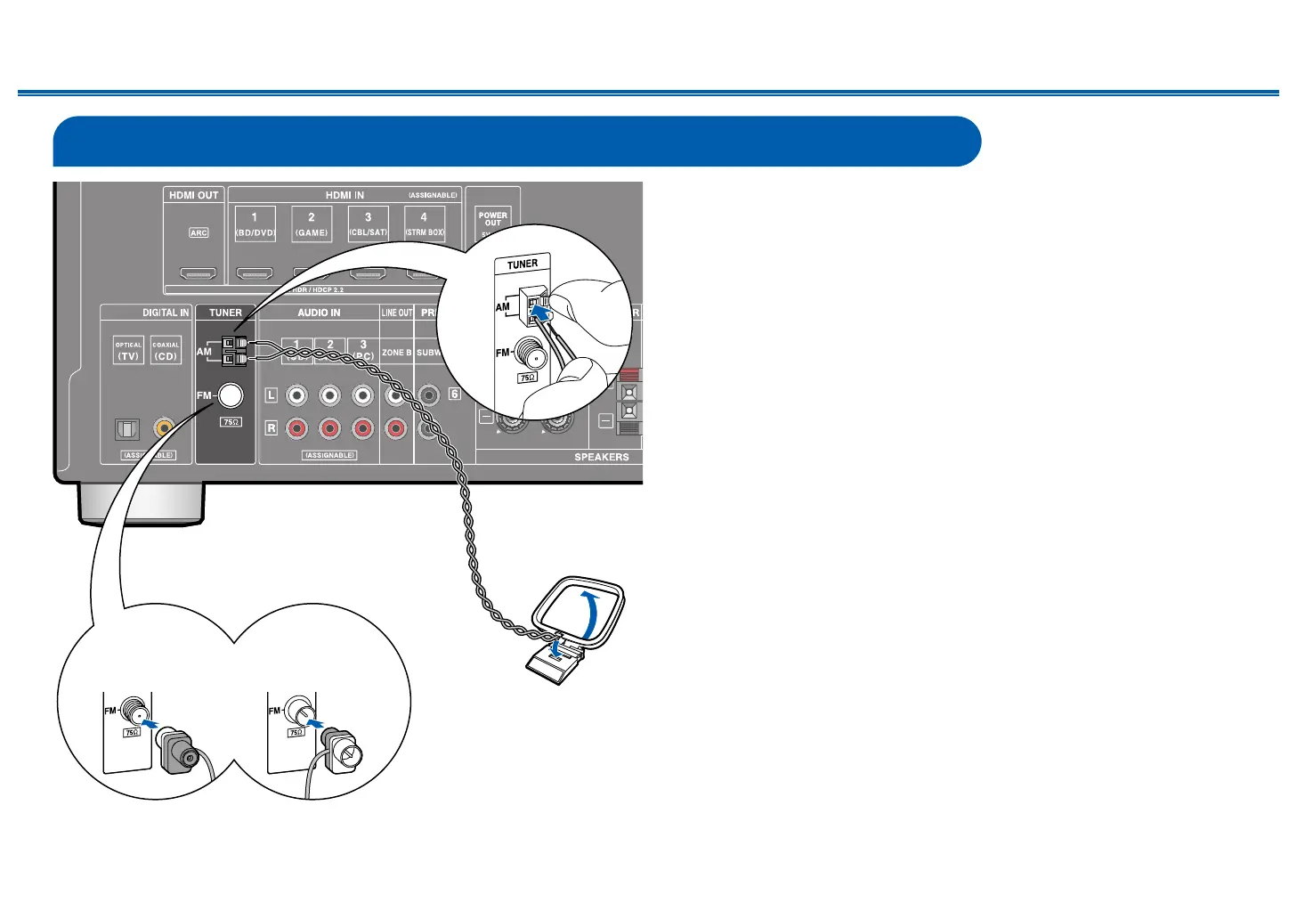 listening while receiving radio signals. Attach the indoor FM antenna to the wall