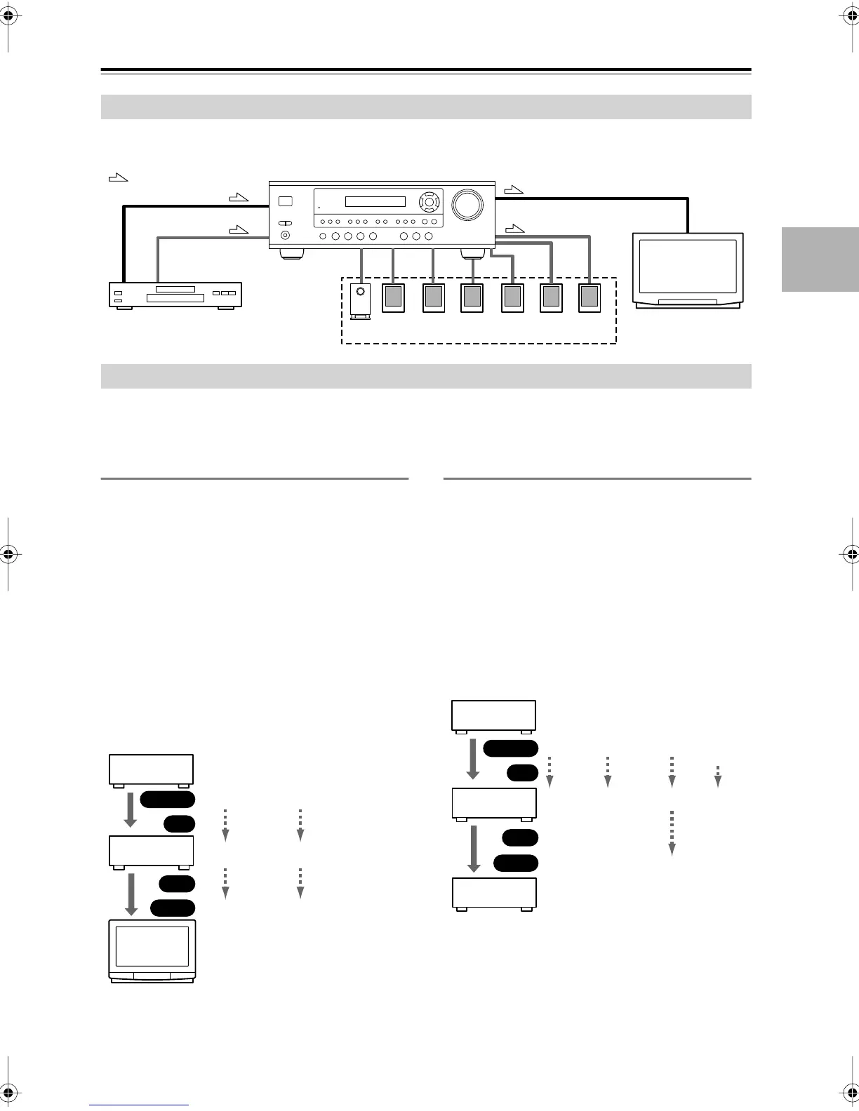 By connecting both the audio and video outputs of your DVD player and other AV components to the AV receiver, you